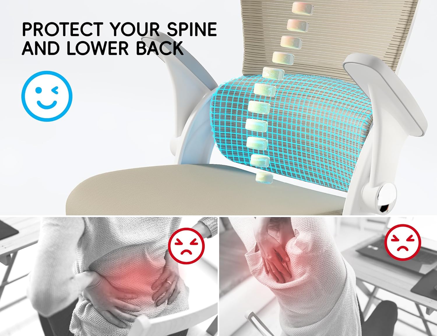 - Breathable Mesh Back for Cool, Sweat-Free Sitting:Stay cool even during marathon sessions! The high-density mesh back promotes airflow, keeping you comfortable and sweat-free—no more sticky backs in summer. Plus, the flexible mesh adapts to your movements, offering dynamic support without sacrificing breathability.