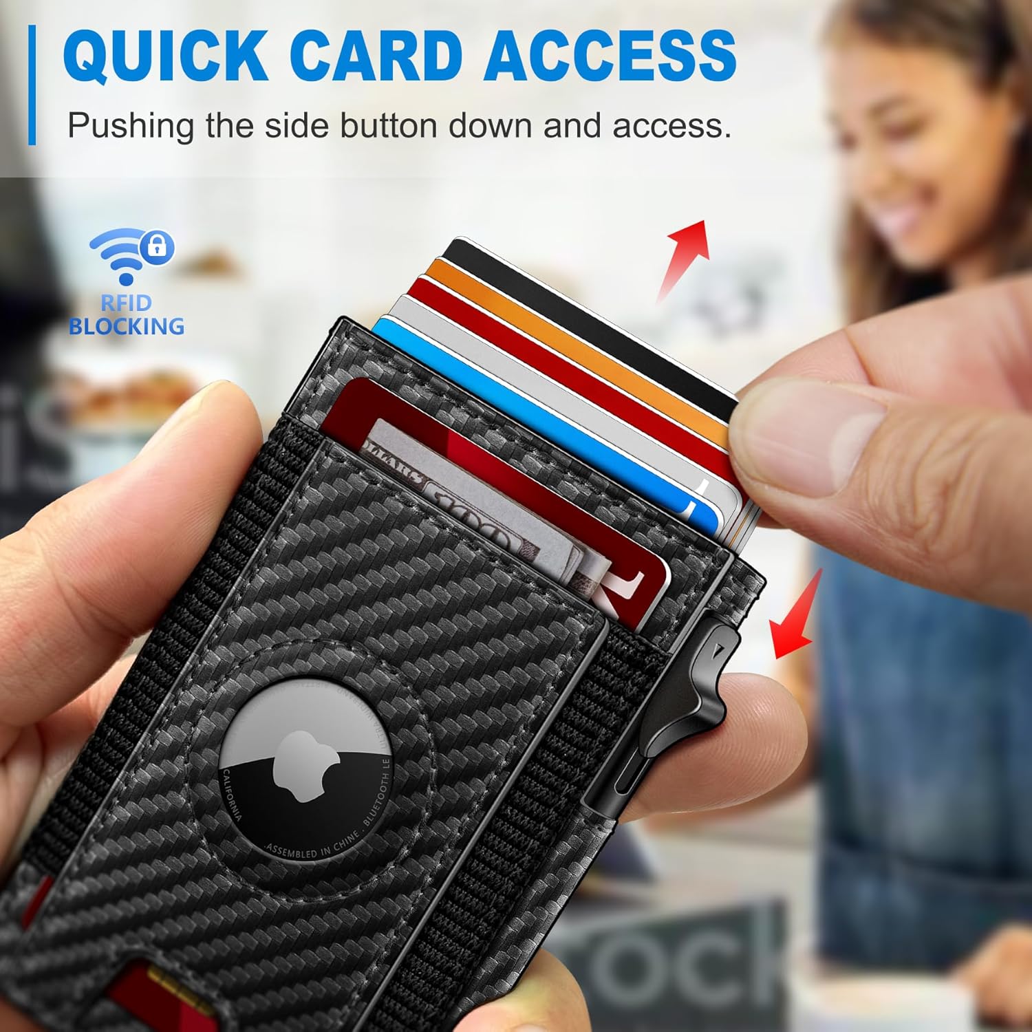 Airtag Wallet for Men, Slim Pop Up Credit Card Holder RFID Blocking Mens Minimalist wallet for 7-9 Cards ID Window, with Gift Box