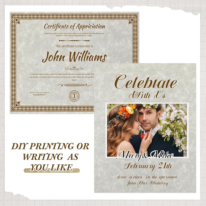 - Work As Different Things: these plain certificate papers are flexible in use, you can use them as certificate printing, wedding invitation, birthday invitation, restaurant menu, theme party decoration and so on, running smoothly in laser and inkjet printers, copiers and offset applications without jams