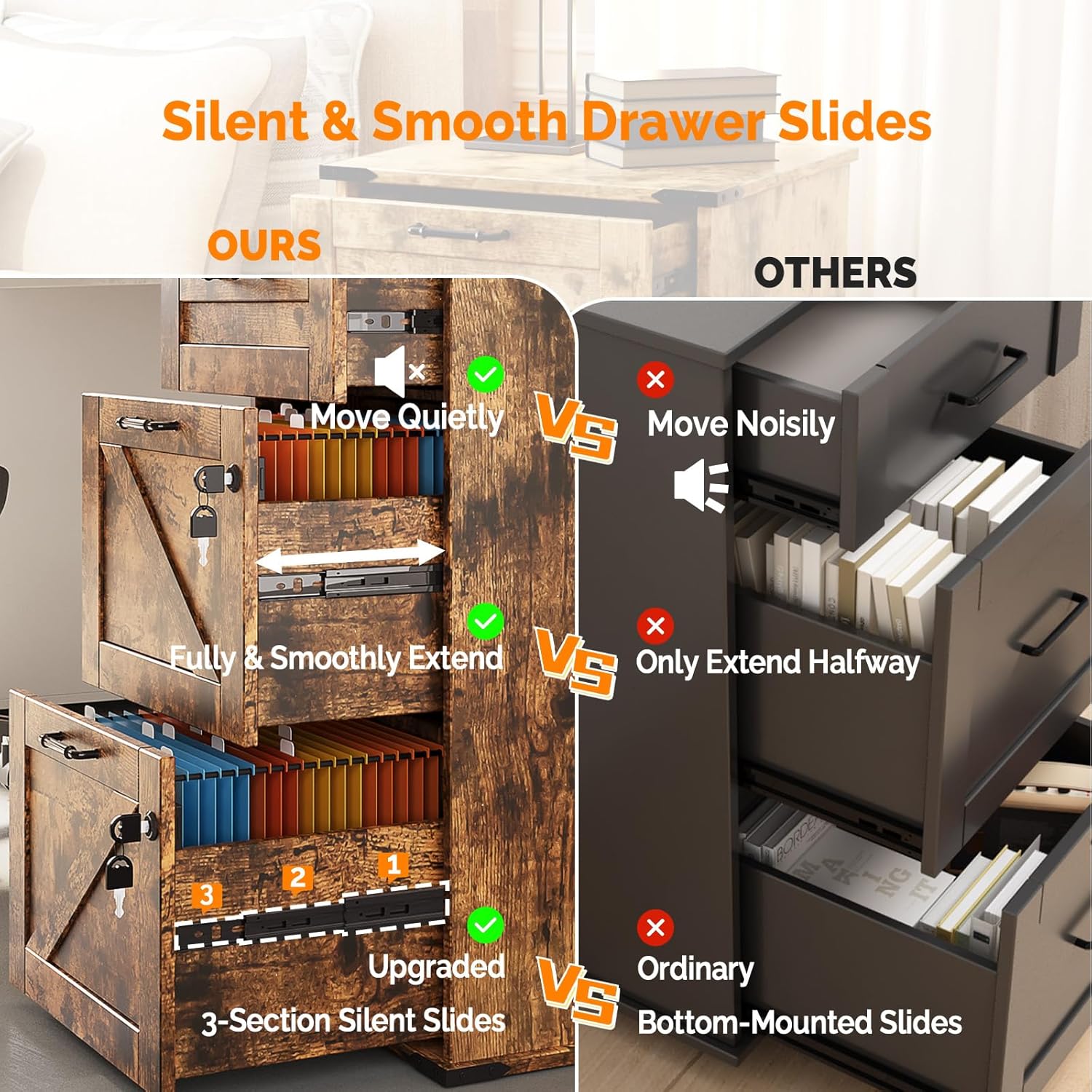 - 【Silent Sliding Perfection】The three-section slides ensure the drawers extend fully and smoothly, without a hint of noise, making it convenient for you to search for and access your file folders.