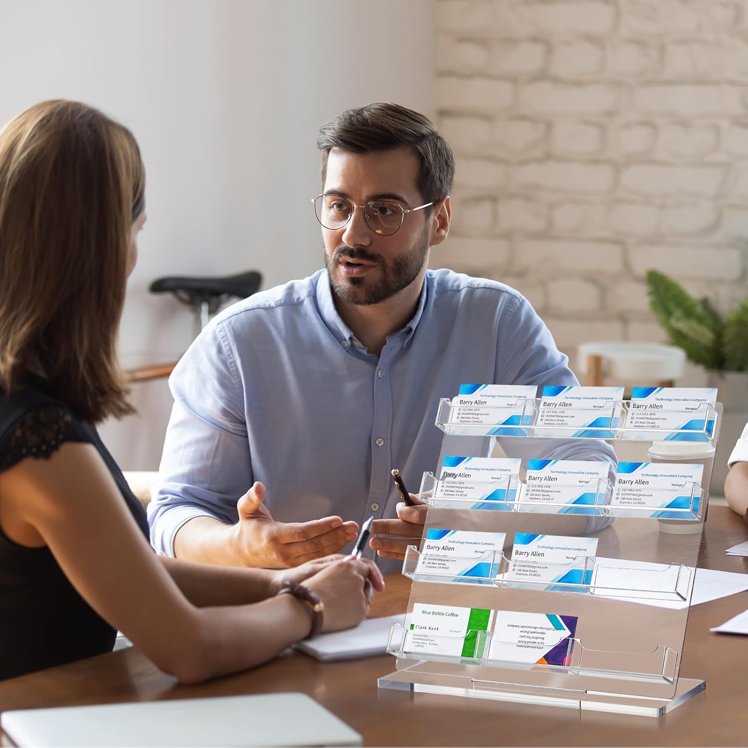 - Intuitive Structure: you will receive 2 business card stands, our business card holder for desks features 4 tiered and 12 slot design, which helps in maximizing space utilization; The slanted angle offers easy display of your business cards, ensuring that they remain unobstructed and easily accessible