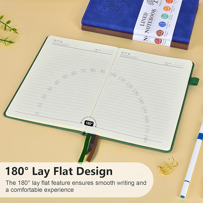 - 【180° LAY FLAT DESIGN & PREMIUM LINED PAPER】: Lay the notebook completely flat for easy writing in any setting—whether at your desk, in a café, or on the go. The 160 pages of 100 GSM lined paper (7mm spacing) offer a smooth writing experience, ideal for journals, work notes, school assignments, or Bible study notes, with minimal ink bleeding or feathering.
