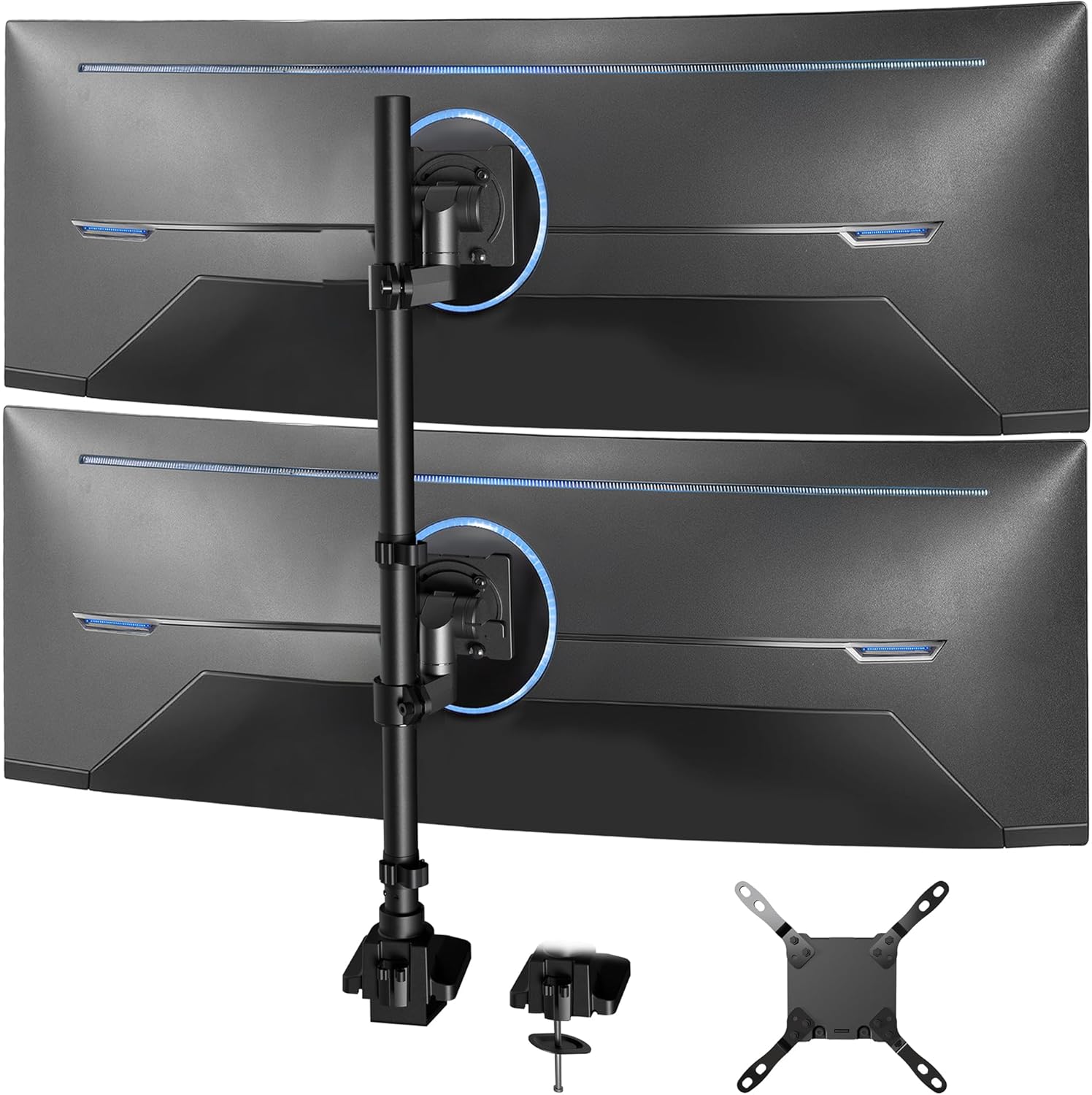 - Ultrawide Compatibility: Vertically stacked dual monitor mount fits 2 ultra-wide screens up to 57” in size, weighing up to 48.4 lbs (curved screens) or 59.4 lbs (flat screens). Also compatible with TVs up to 43" in size