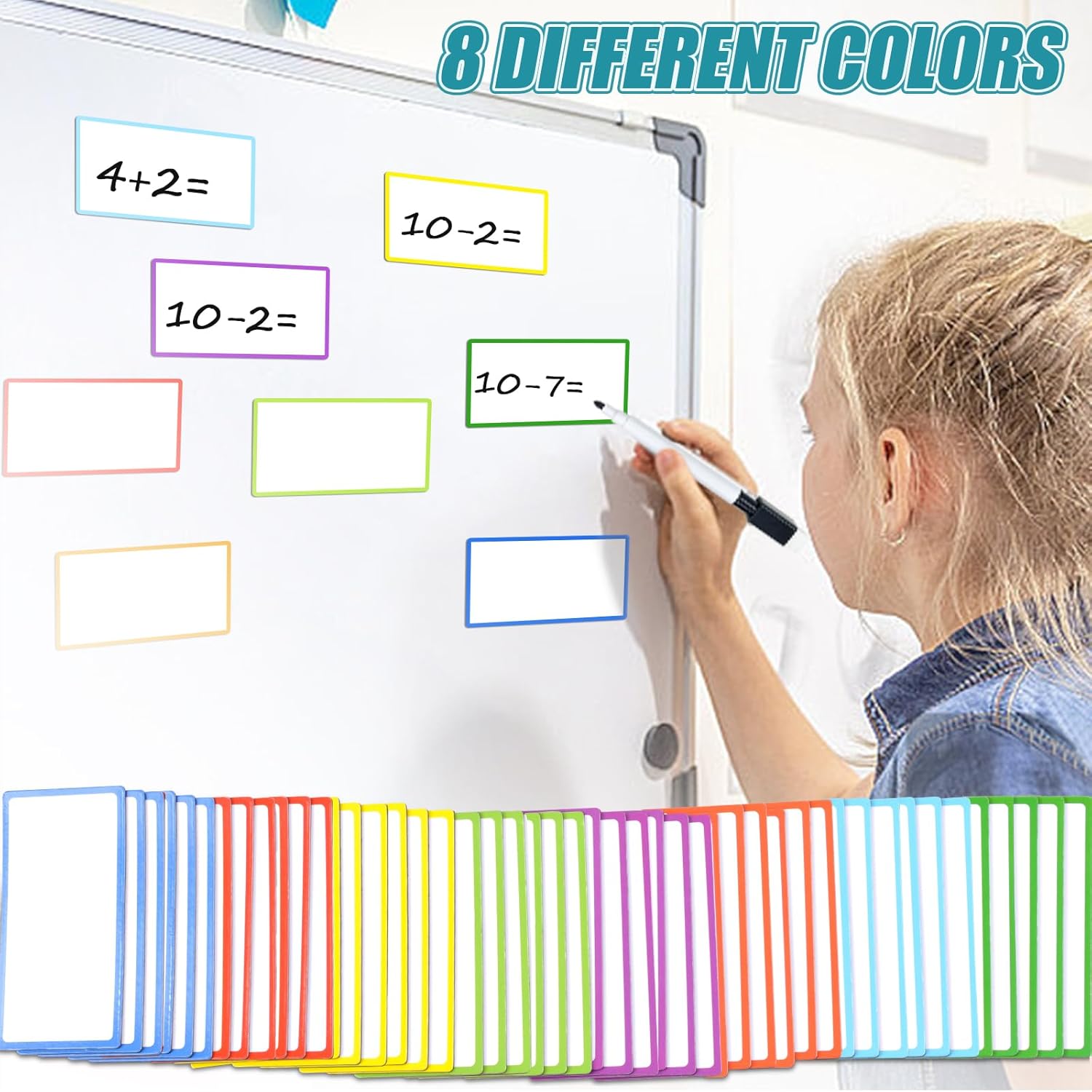 80 Pack Magnetic Dry Erase Labels 8 Colors 4"x2" Magnetic Labels Reusable Strips for Classroom, Office, Cabinet, Write On Magnets Sticker Writable Erasable Name Tags for Fridge