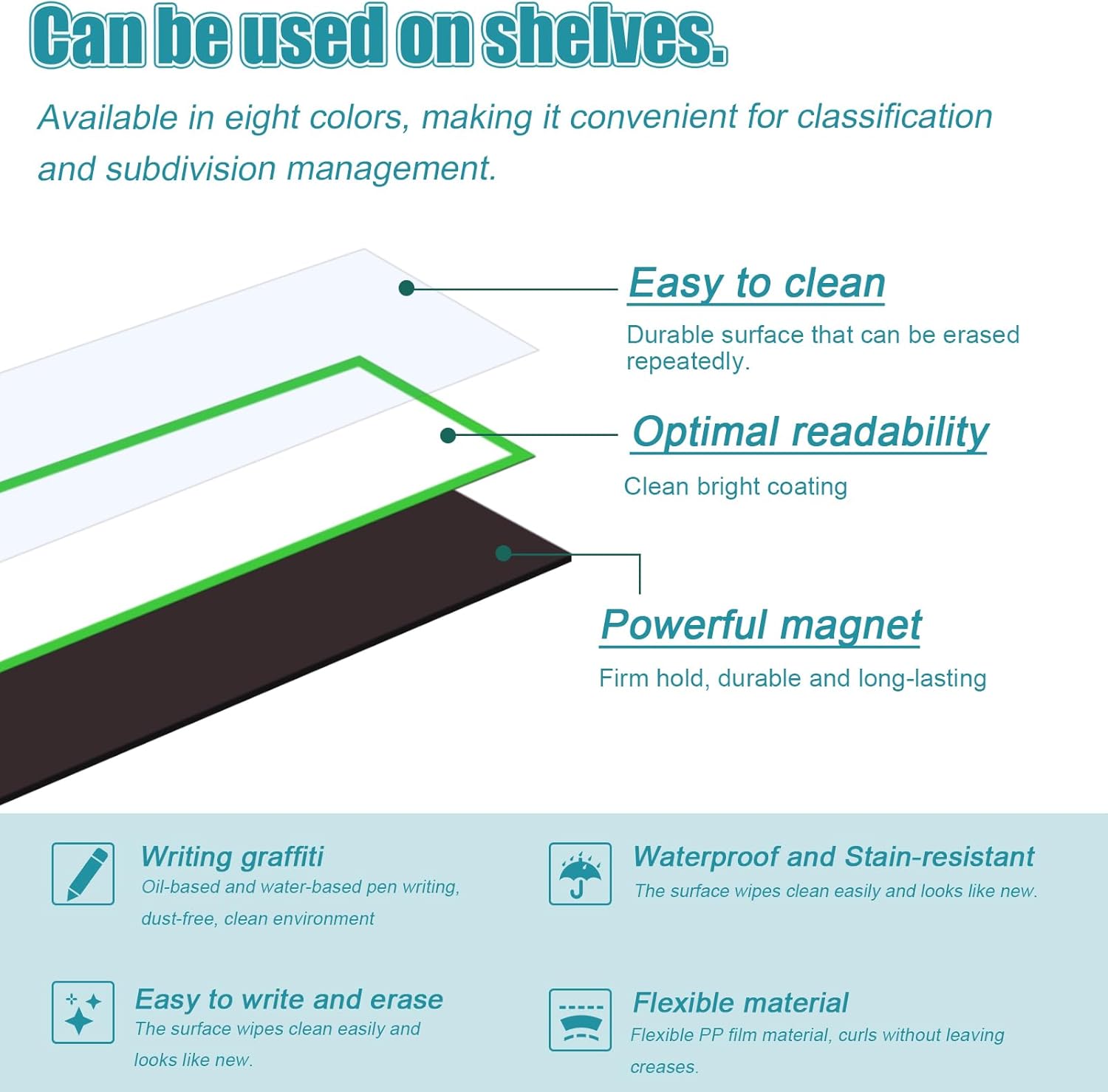 - 【Compact and Convenient】Our magnetic strips for white board feature a fully magnetic backing, making them easy to attach to items such as refrigerators, chalkboards, steel furniture, wrought iron cabinets, and iron doors. The magnetic name tags for classroom can be cut into any shape using a utility knife or scissors