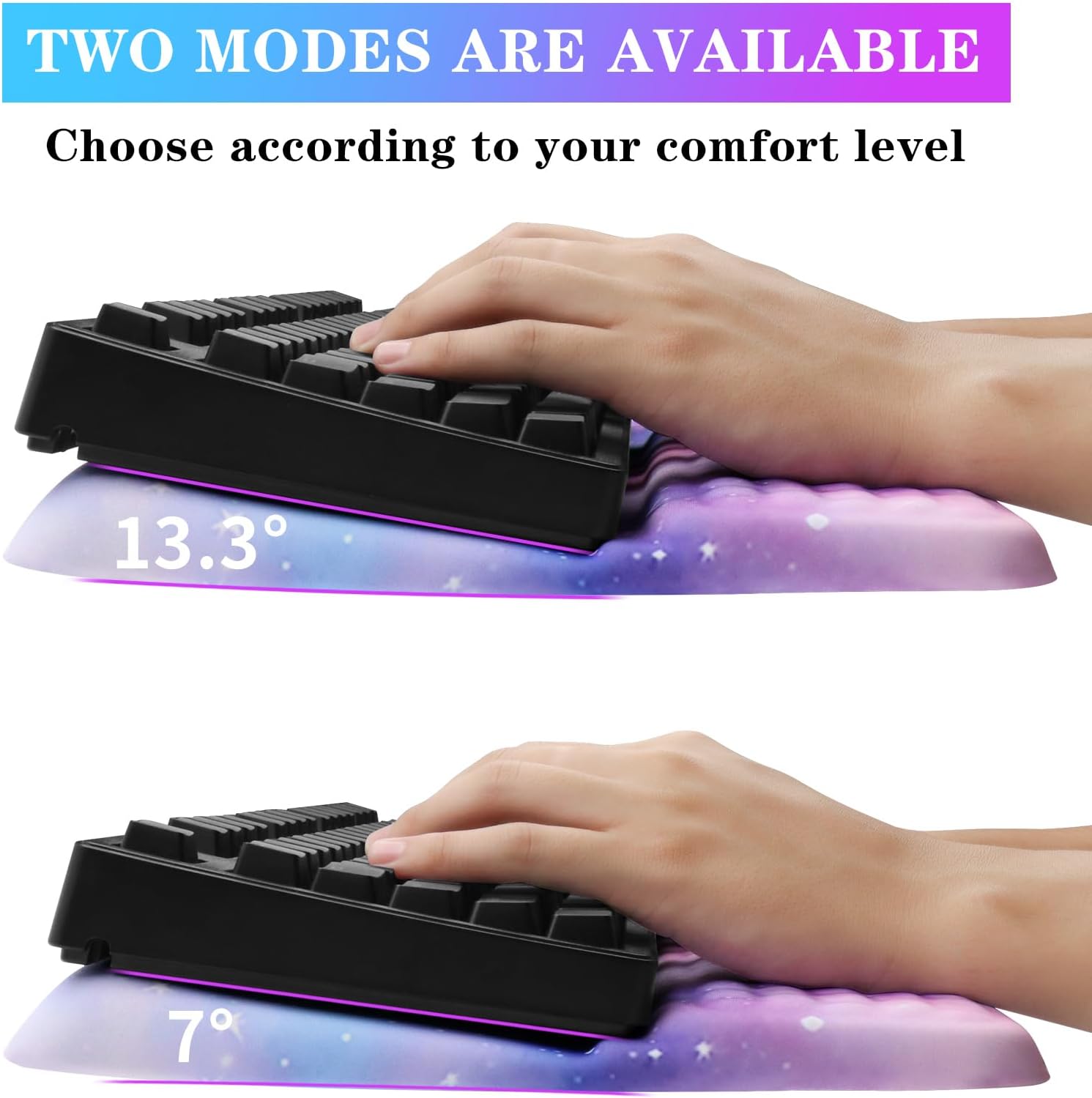 - 【Ergonomic Keyboard Stand】Ergonomic keyboard stand with wrist rest conforms to your wrists for maximum comfort and support. You can adjust the keyboard's position on the keyboard holder according to your comfort. Typing will become very easy.