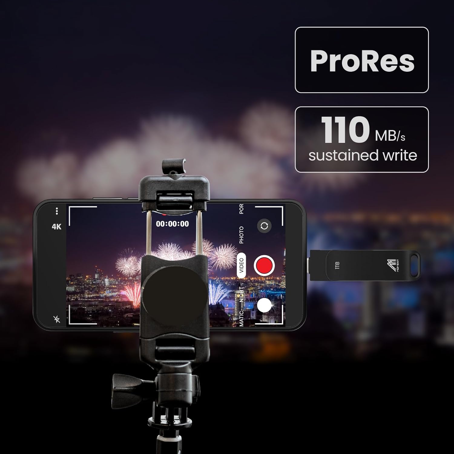 - Smooth 4K & ProRes Recording: Up to 110MB/s sustained write speed ensures stable video capture with no dropped frames—ideal for iPhone 15 Pro, drones, and cameras.