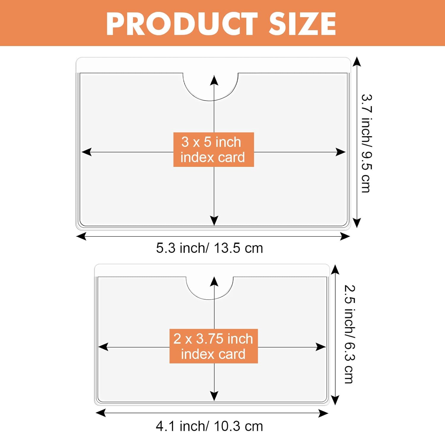 - You will receive 100 self-adhesive card holders for labels, 50 pcs 5.31 x 3.74 inches/ 13.5 x 9.5 cm (fits cards up to 3 x 5 inches), 50 pcs 2.5 x 4.1 inches/ 6.3 x 10.3 cm (fits cards up to 3.75 x 2 inches)