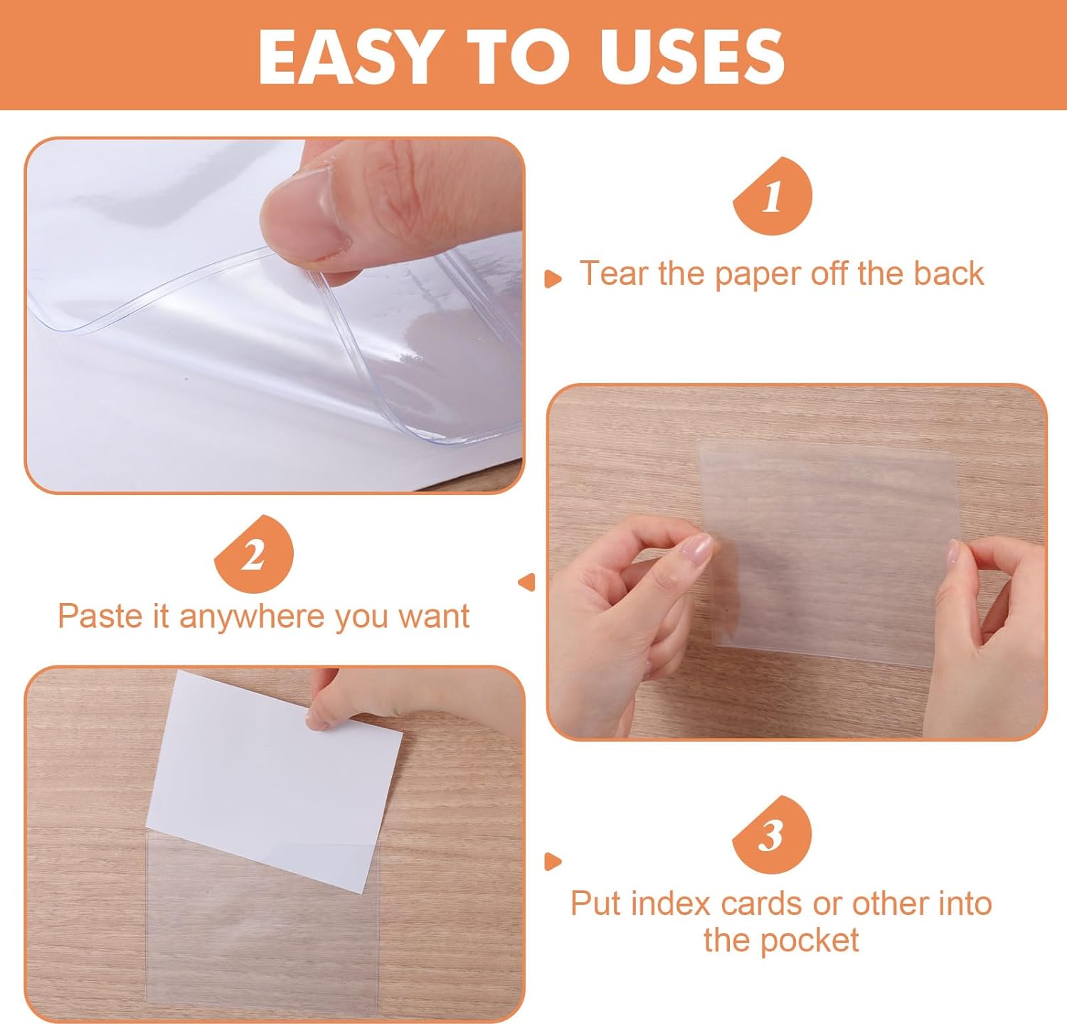 - Stay Organized: the self adhesive index card pocket can keep order by inserting your cards into plastic sleeves and attaching them wherever you need them; Our self-adhesive cards are suitable for making library labels, self adhesive name tags for classroom, toy labels for bins with pictures, labels for plastic storage bins and other