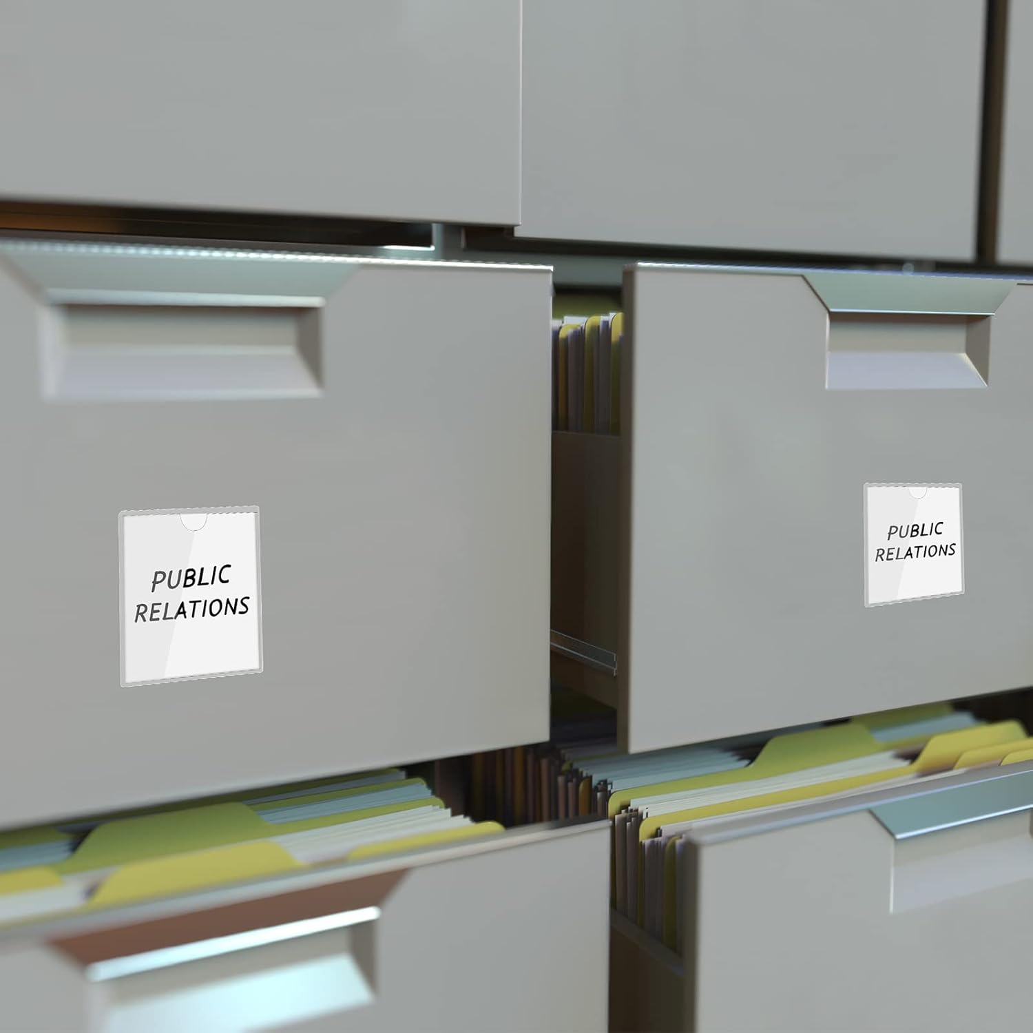 - Easy to Identify: adhesive pockets are double-sided transparent, the smooth and clear front side is to view information and easy to read through; They were exactly what you need to label the storage bins, lockers and drawers