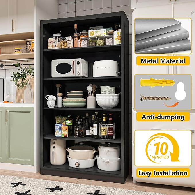 - Sturdy & Reliable Metal Living Room Bookshelf: Unlike bookshelf small narrow particle board, this book shelf black for bedroom provides superior strength, durability, and a long lifespan. Office bookshelf can hold more books and includes anti dumping device for added stability