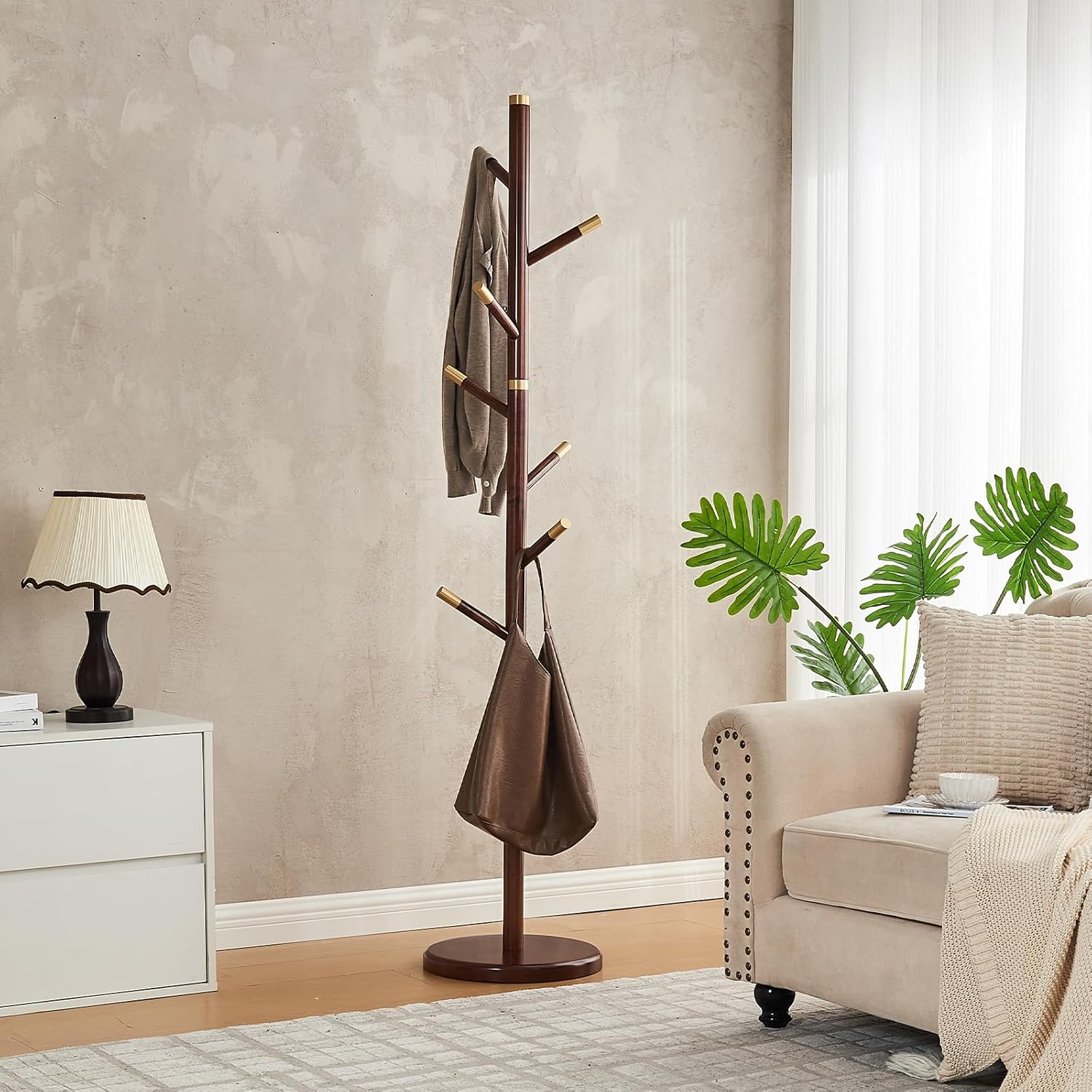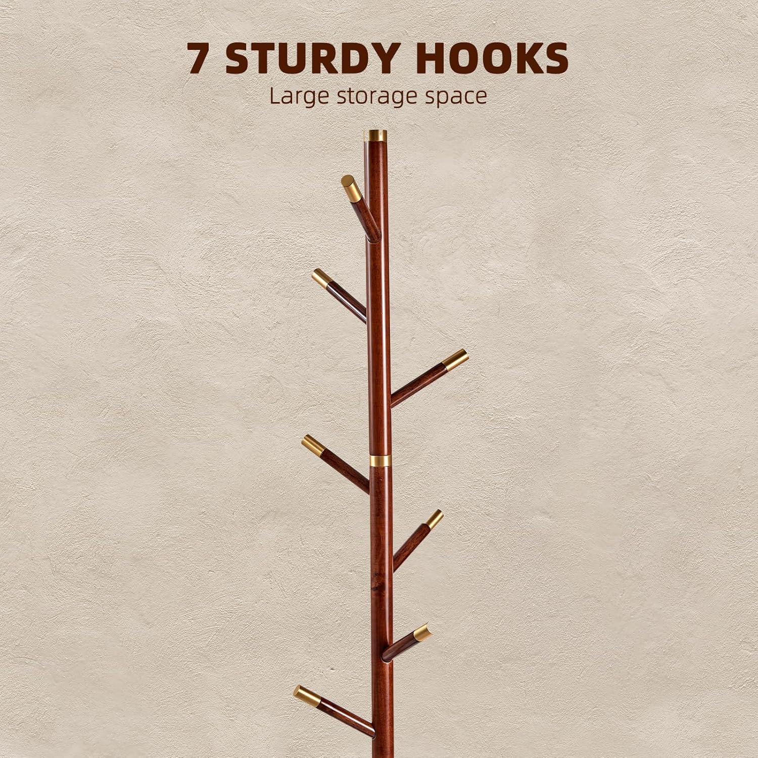 Uniclinens Coat Rack Freestanding Solid Wood Coat Tree Standing with 7 Hooks, Coat Rack Stand Creative Tree Branch-look (Walnut)