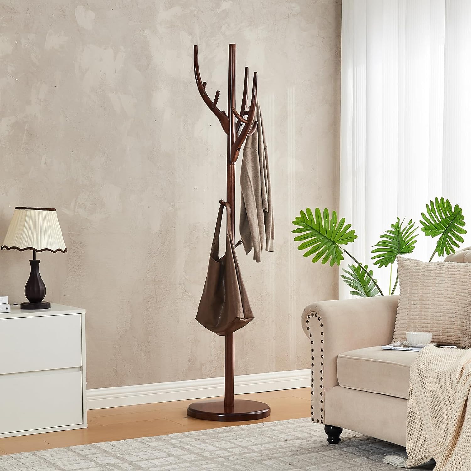 - 【CREATIVE AND STURDY】 The wood coat rack freestanding boasts 12 sturdy branches, each capable of holding 11 lbs, totaling a max capacity of 120 lbs. Its creative design combines beauty with functionality.