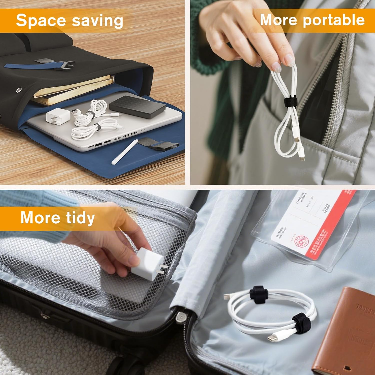 - Strong Grip, No Slip: Features dual-use adhesive technology (hook + loop sides) for maximum holding power. Keeps cables neatly bundled and prevents slippage, even for heavy-duty cords