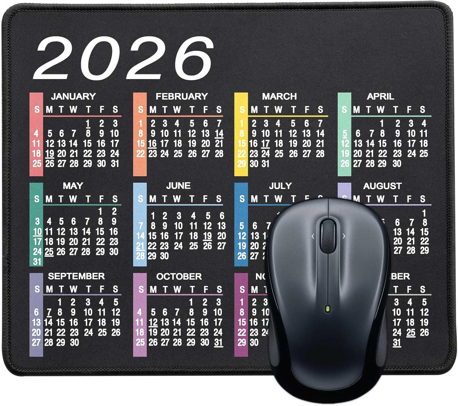 Mouse Pad with Non-Slip Rubber Base, Waterproof Computer Mousepad with Stitched Edges, Mouse Pads for Computers, Laptop, Gaming, Office & Home, 9.5 x 7.8 in (2026 Calendar Jet Black)