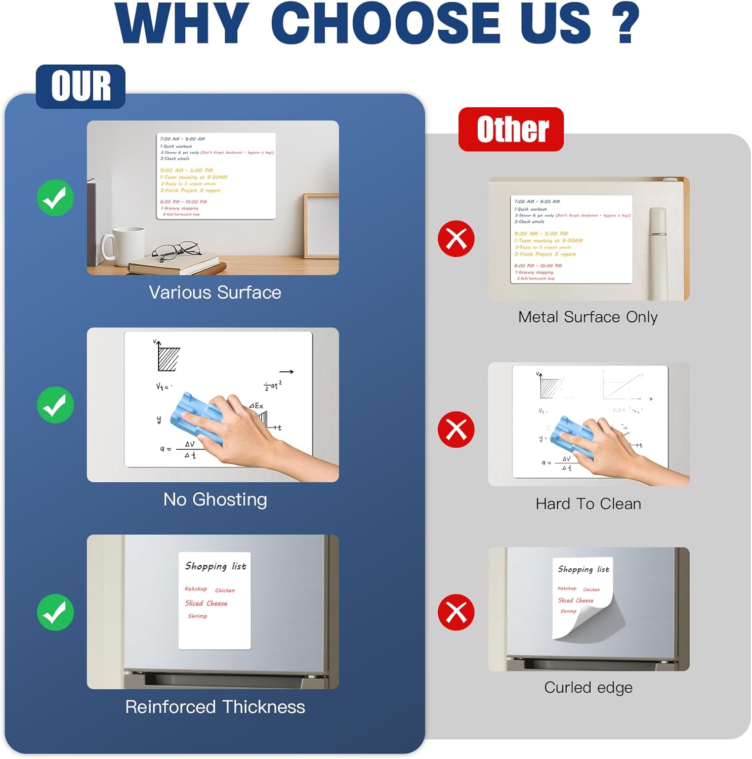 - 【Cut-to-Fit Creative Freedom】 DIY Any Shape: Trim with scissors for custom sizes—a perfect whiteboard sticker alternative crafts. Multi-Scene Master: From kitchen meal planners on fridge tiles to math drills on bathroom mirrors—the non-magnetic sheets stick everywhere creativity strikes
