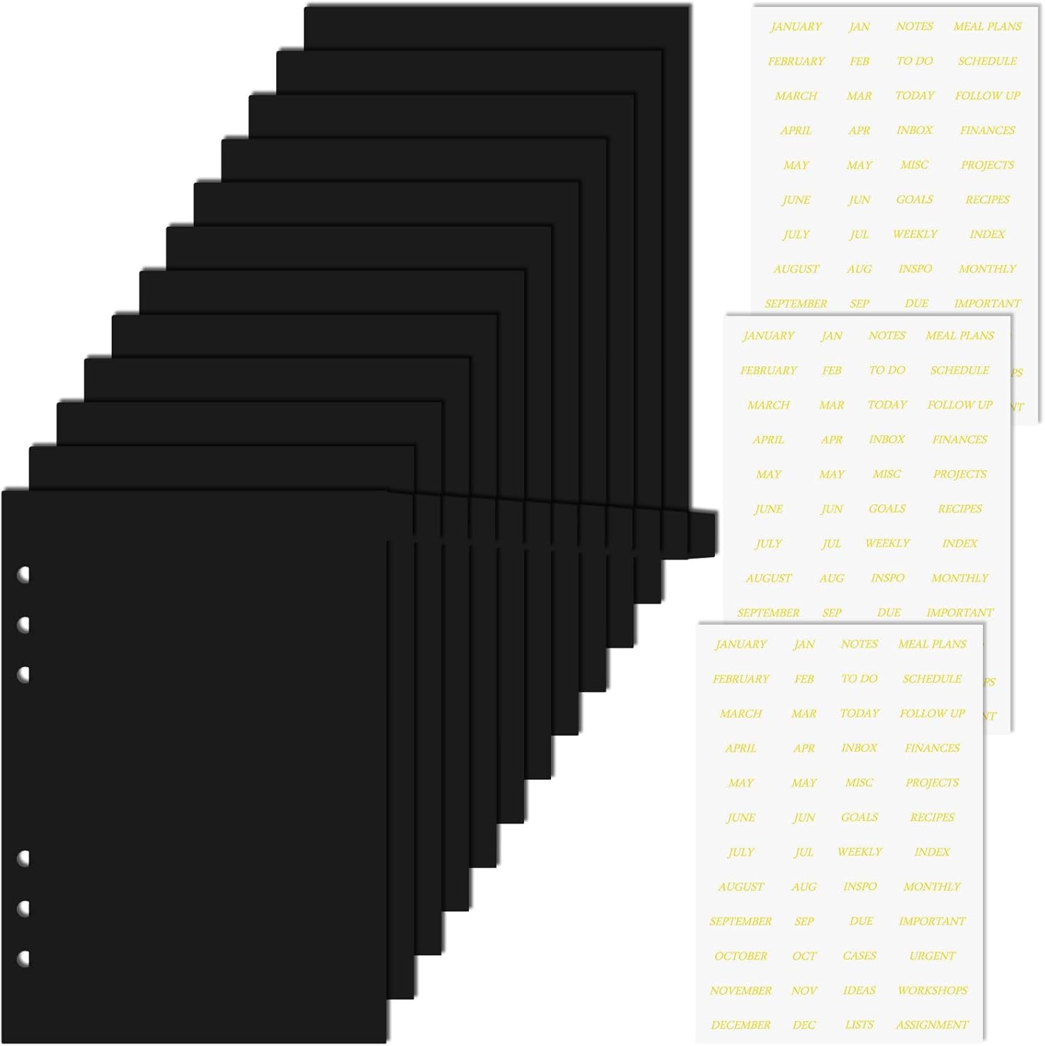 A5 Plastic Binder Dividers 6 Holes Durable Plastic Tab Dividers for 6-Ring Binders, Notebooks, Planners, 5.7x8.3 inch (Black, 12 tab)
