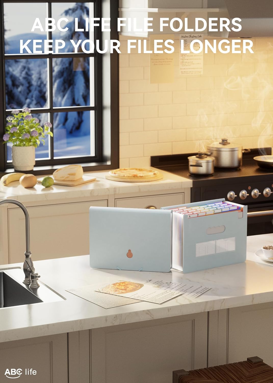 - 26 Expanding File Folder: ABC life pockets accordian file organizer suitable for filing tax and storing important family documents. Product size is 13 "x 9.4"x 28", top and bottom are both expandable, For letter/A4 size files.