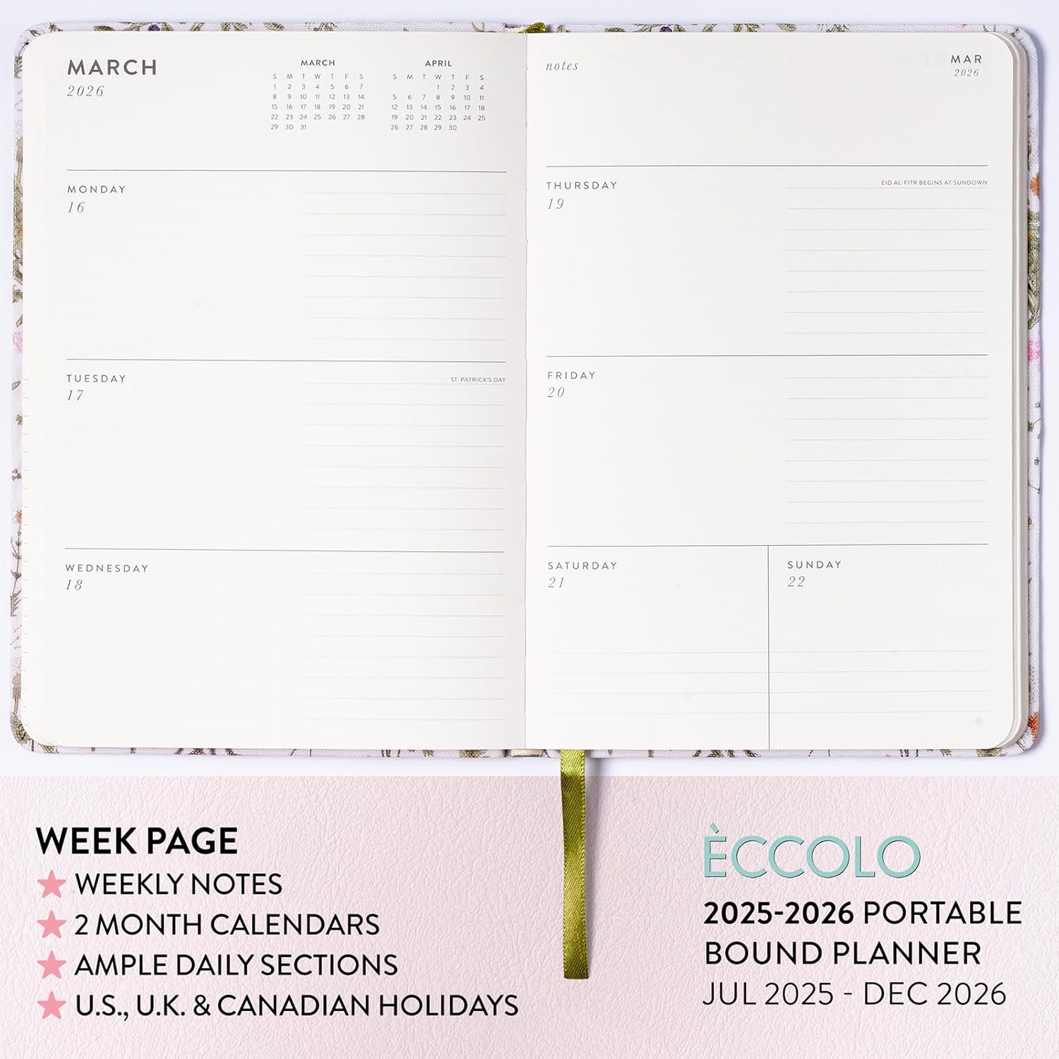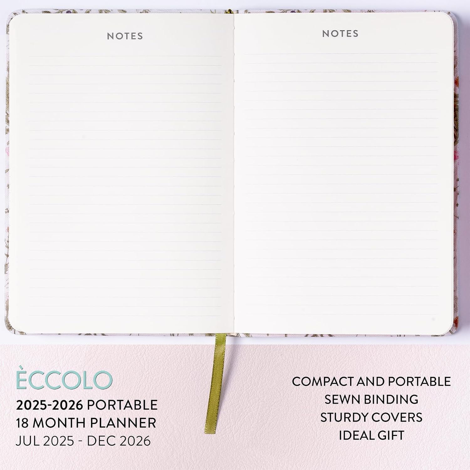 2025-2026 Eccolo 18 Month Linen Botanical Bound Planner, Monthly & Weekly Pages (5.25 x 7.75" - July 2025 - Dec 2026)
