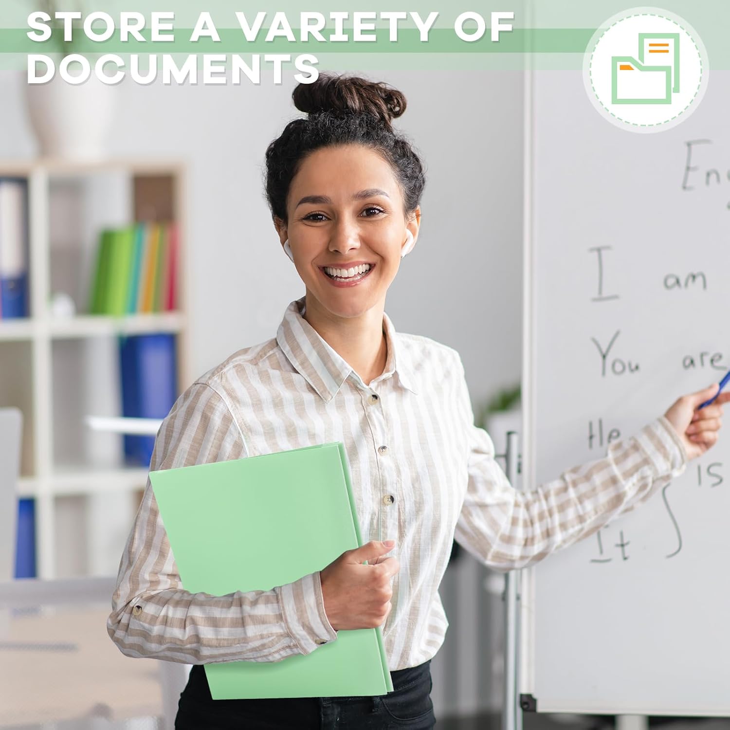 Henoyso 72 Pcs Plastic Folder with Clear Front Pocket and 3 Prong Plastic Folders with Card Slot Pocket Folders with Prongs for School Office (Light Green)