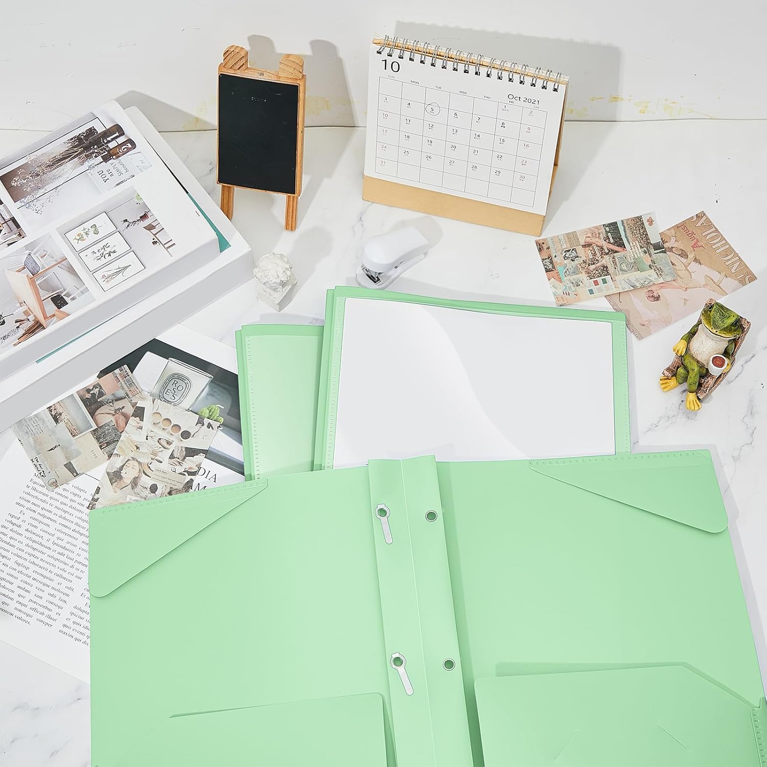 - Practical and Useful: with a clear front pocket, you can put your catalog, tables, favorite reports, presentations and more for clear display; Each plastic folder has 2 internal pockets to help organize and store your letter sized paper and documents, there are also 3 prongs to secure your 3-hole loose leaf paper, and the card slot can hold your ID card or business card, practical for your daily work