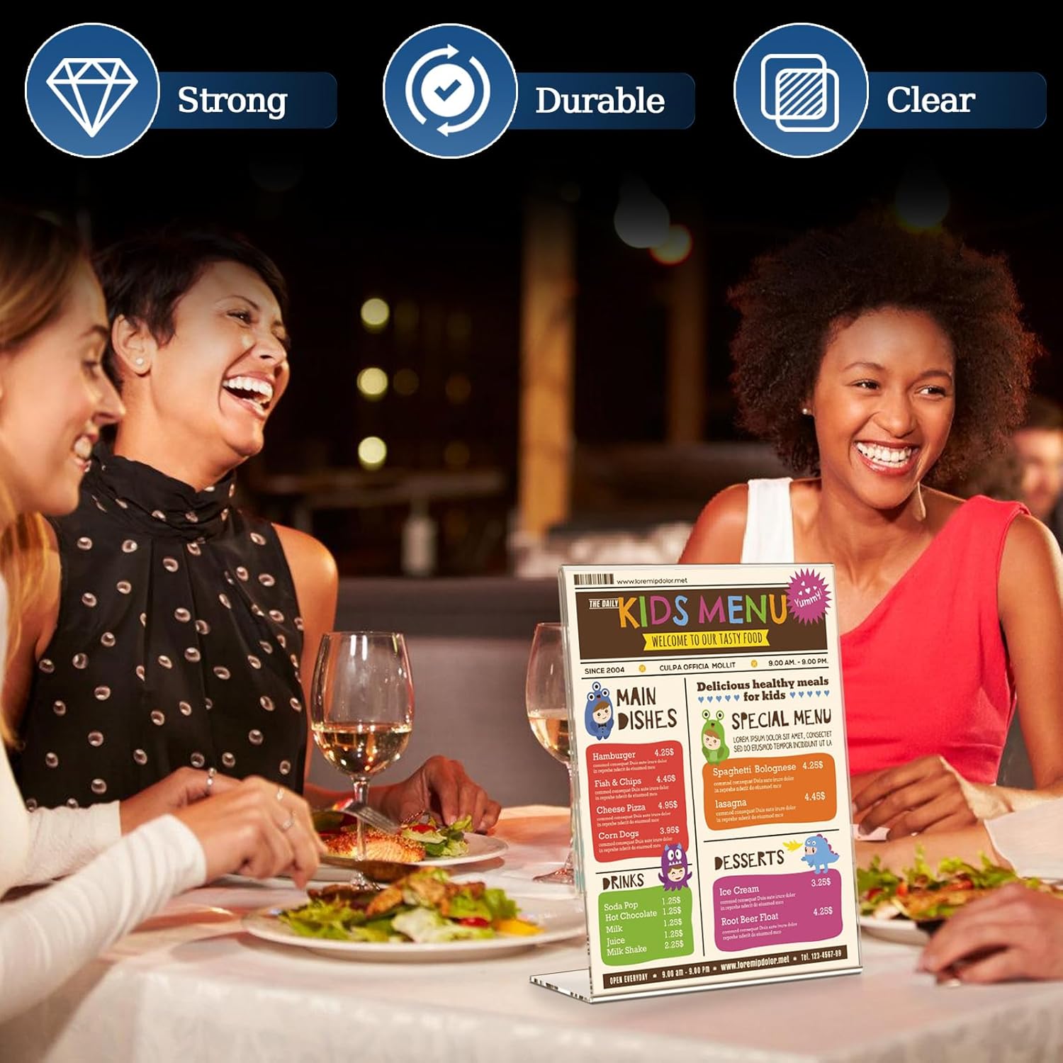- High Quality: The sign display holder is made of high-quality, crystal-clear acrylic with polished edges to ensure both safety and aesthetics. The durable acrylic material is resistant to wear. The table paper stand offers long-lasting performance