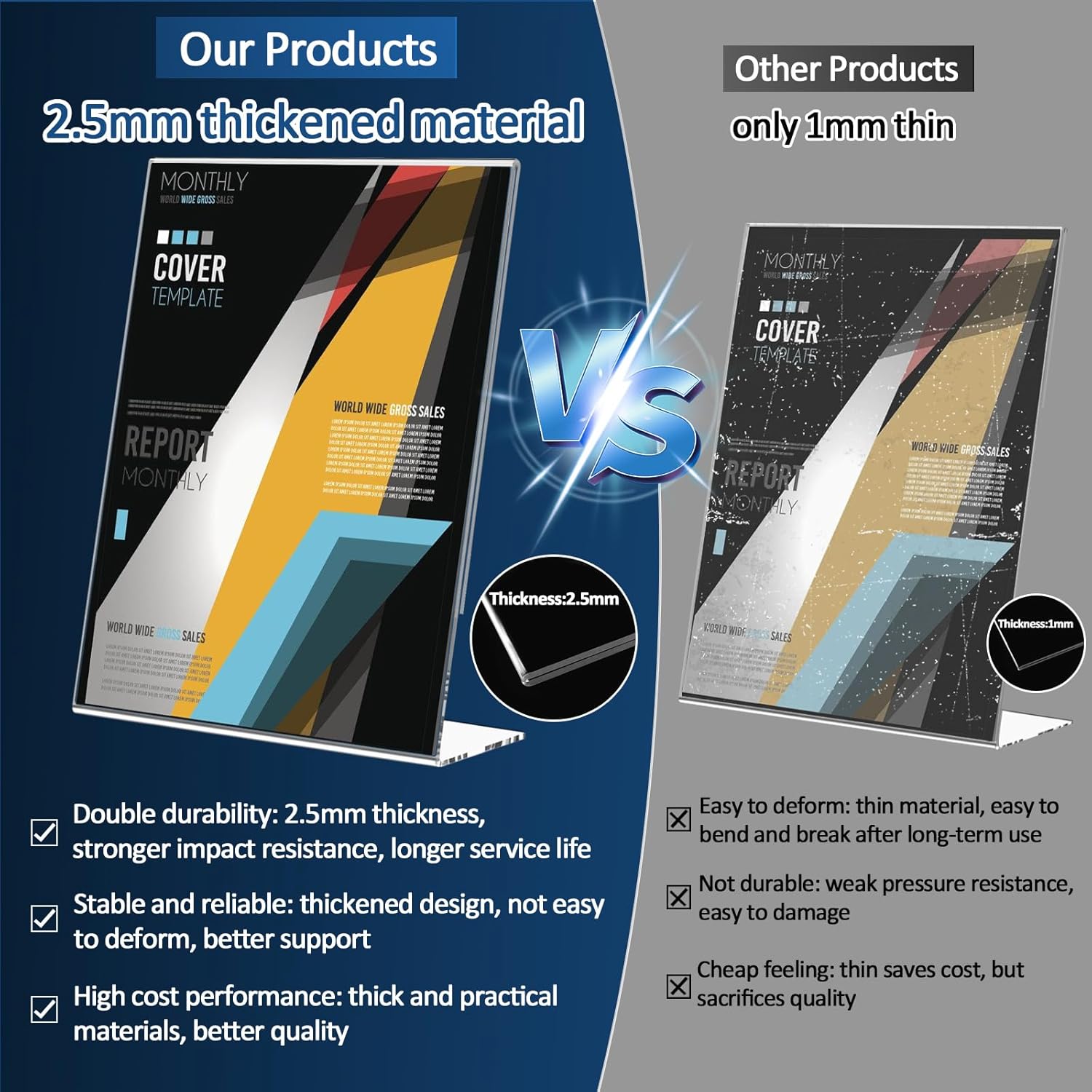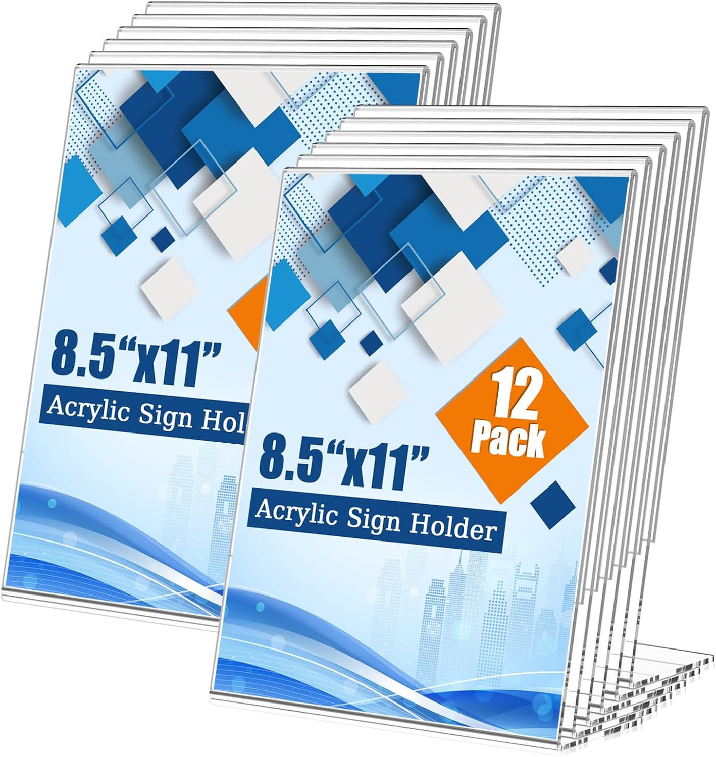 - Notice:Before use, simply peel off the protective film. You will receive 12 pcs 8.5×11 inch clear acrylic stands for display, each featuring a convenient slot on the side for easy sign replacement ; ideal for displaying signs in bulk