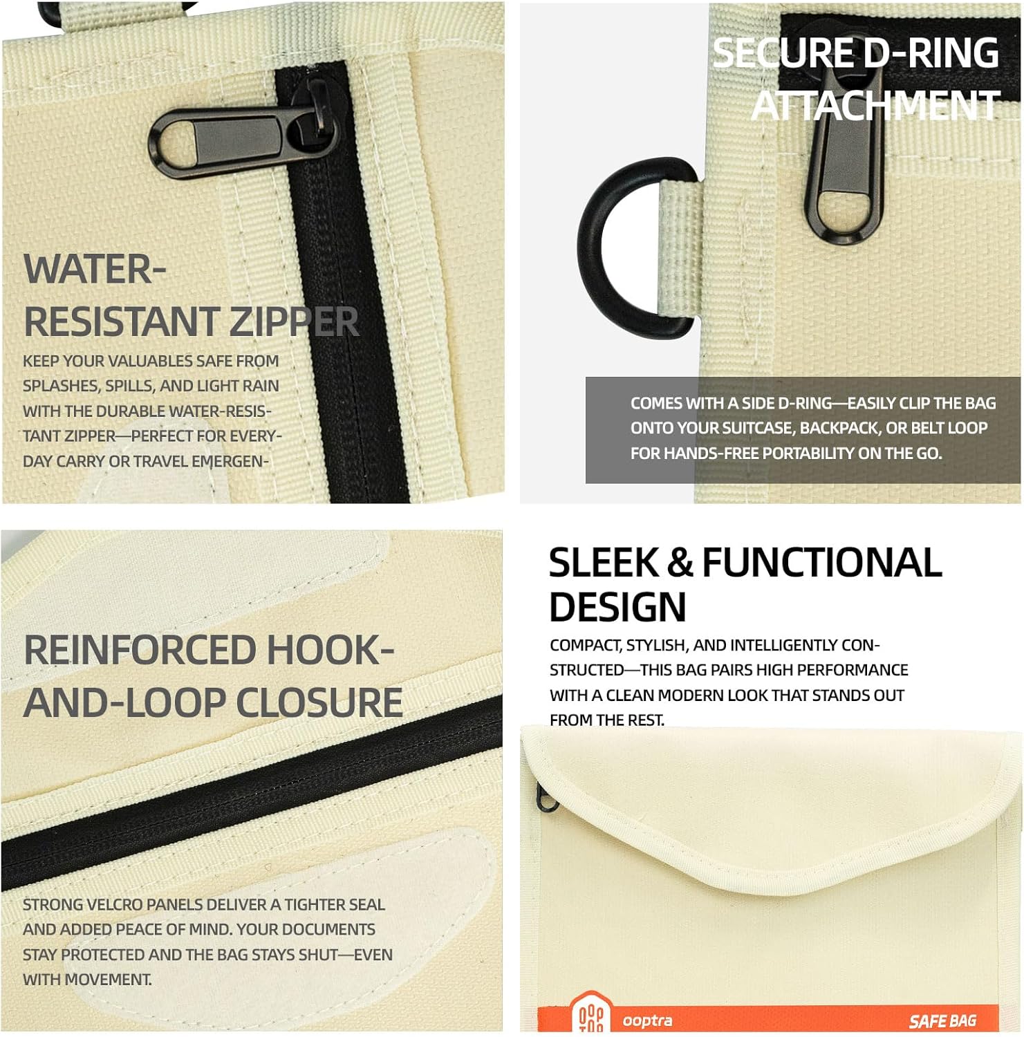 - 【Fireproof Travel Pouch – Compact, Portable & Hook-Ready】 This compact fireproof document pouch is built for convenience and peace of mind. Ideal for travel, business trips, or everyday use, it protects your essentials—like cash, passports, and small documents—from fire and water damage. Designed with an external buckle hook, it easily attaches to backpacks, luggage, or handbags, making it a smart, portable anti-theft storage solution on the go.