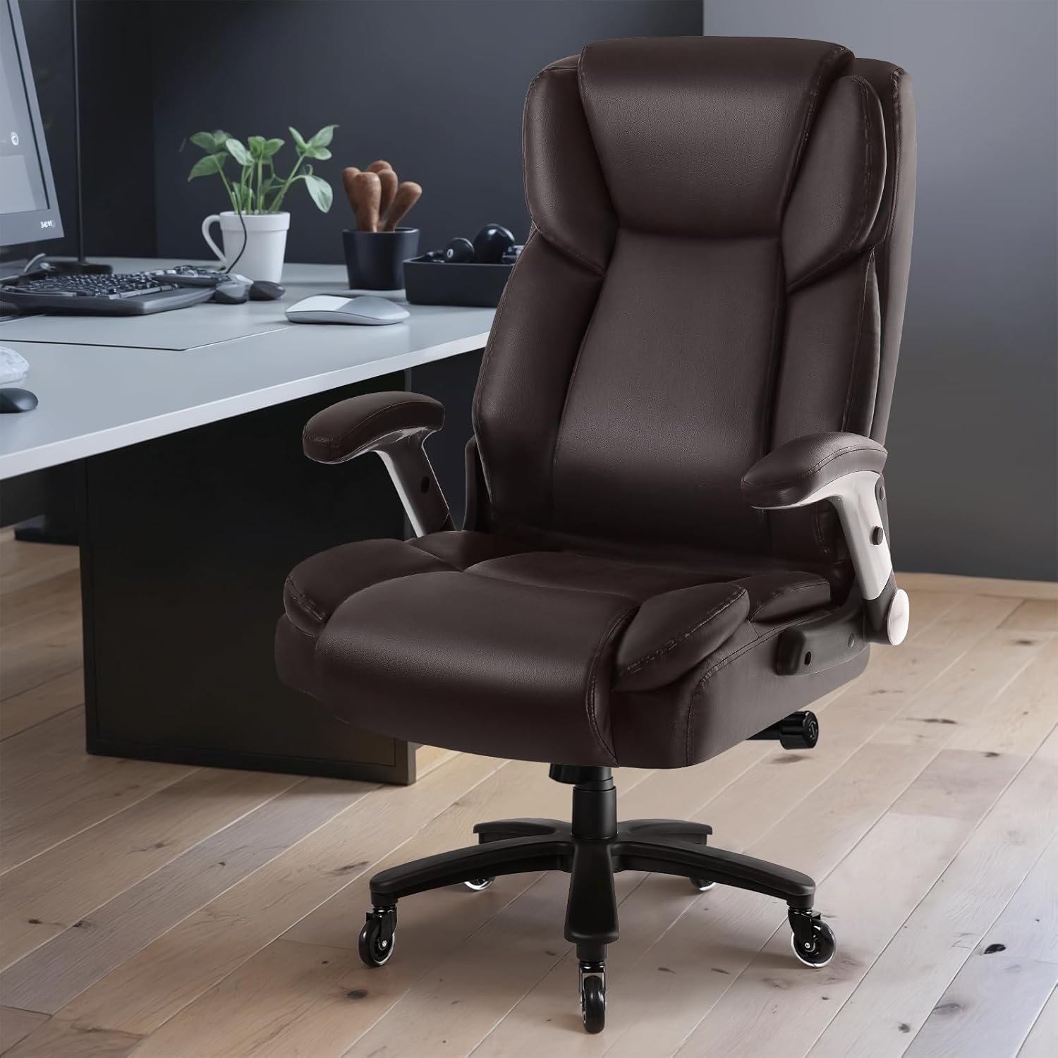 Big and Tall Office Chair 600lbs, Heavy Duty Executive Office Chair for Heavy People, Brown High Back Office Leather Ergonomic Chair with Adjustable Armrests and Lumbar Support for Computer Desk Chair