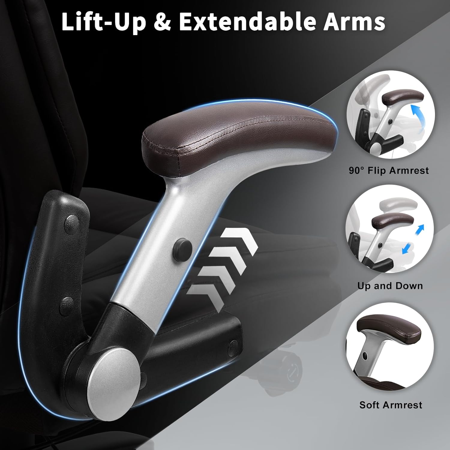 - 【Lift-Up Armrests - Space-Saving & Convenience】: This ergonomic high-back office chair features adjustable armrests that allow you to enjoy maximum relaxation while occupying minimal space. The armrests can be easily adjusted during use and conveniently tucked away when not needed, creating more room and facilitating movement. Whether you're typing, writing, or taking a break, our comfy high back heavy duty office chair ensures a satisfying seating experience.