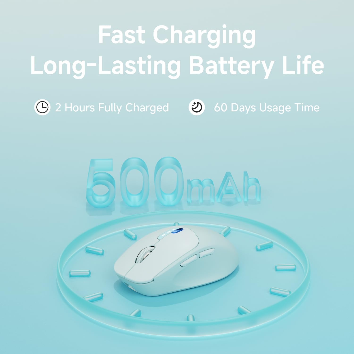 - Dual Connection: Connect two devices simultaneously using either Bluetooth/2.4G connection for a wireless mouse experience. Seamlessly switch between the connected devices with a simple slide of the switch button.