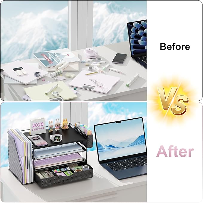 - 【Space Saving】: The compact design of this wood desk organizer maximizes vertical space while keeping all office supplies within reach, making your workspace more organized.