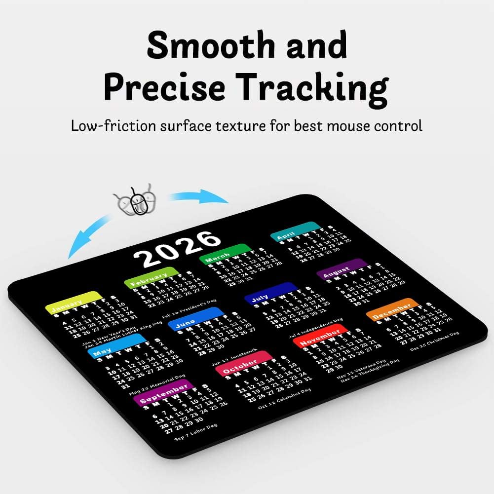 2026 Calendar Mouse Pad with Holidays, Computer Mousepad with Non-Slip Rubber Base, Mouse Pads for Computers Laptop Mouse 9.6 x 7.9 inch(Black)