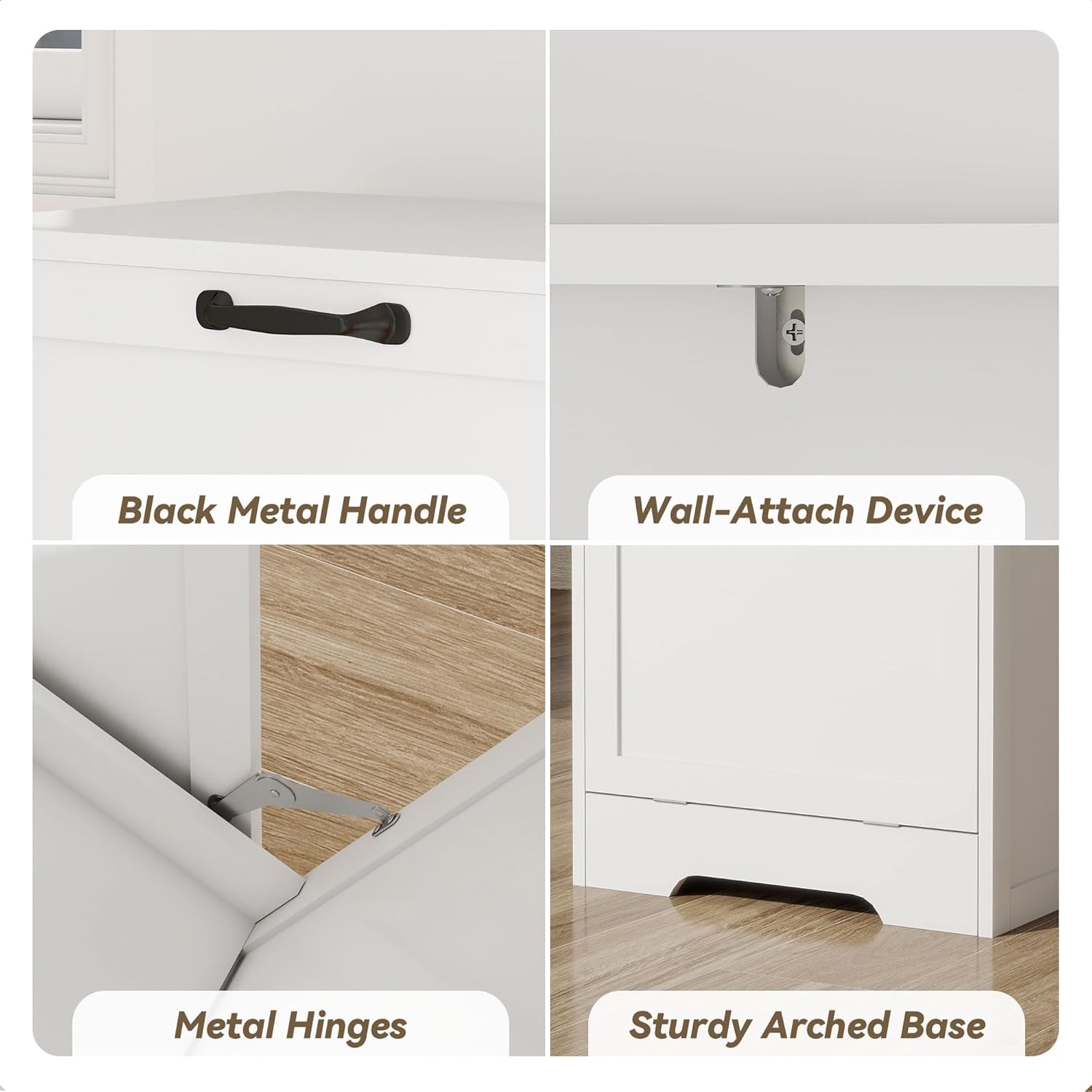 - Practical Garbage Bin: This laundry room cabinets a built-in bin, unlocking endless storage options—use regular trash bags, reusable containers, or even dividers to sort recyclables and cleaning supplies. Its flip-top door opens wide, making loading and unloading effortless. It adapts to evolving needs, an ideal choice for families, pet owners, or anyone seeking flexible storage.