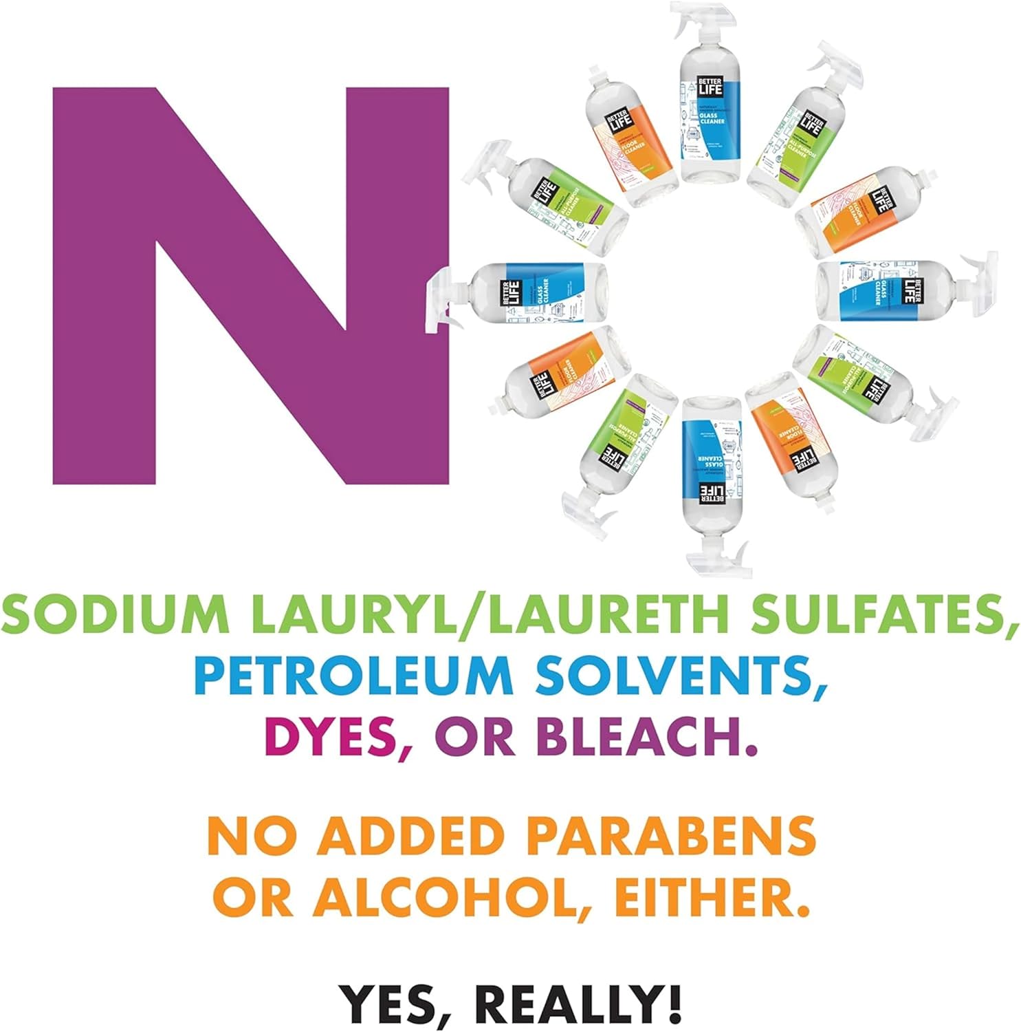 - WORRY-FREE WIPING - Our all purpose cleaner spray is made with no petroleum solvents, chlorine or bleach, added alcohols, added parabens, SLS or SLES - making it gentler on your eyes, nose and skin.