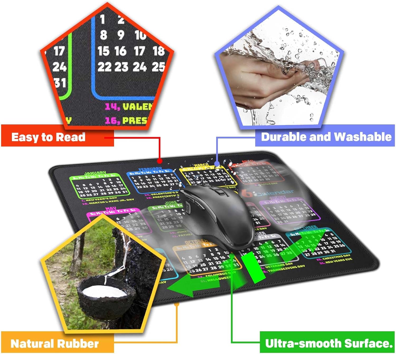 Calendar Mouse Pad 9.5 X 7.8 in, Mouse Pads with Stitched Edges and Non-Slip Rubber Base, Home Office Desk Decor Accessories for Computer Laptop Work Gaming (Black 2026 with Holidays)