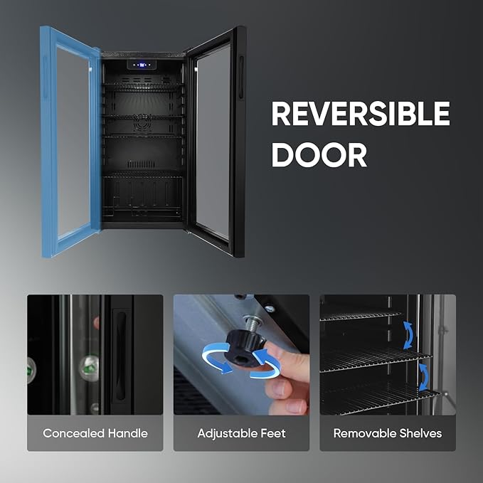 - EFFORTLESS COOLING, ONE TOUCH AWAY - The beverage cooler's smart control panel puts you in complete control of your beverage storage. You can easily adjust the temperature range from 37°F to 64°F, giving you the freedom to store different types of beverages at the ideal temperature. Bright LED lights give your collection a sophisticated look. Whether it's wine, a variety of sodas or a cold beer, it provides the perfect temperature conditions. It is dedicated to creating the ideal drinking environment for you, making every sip a pleasurable experience