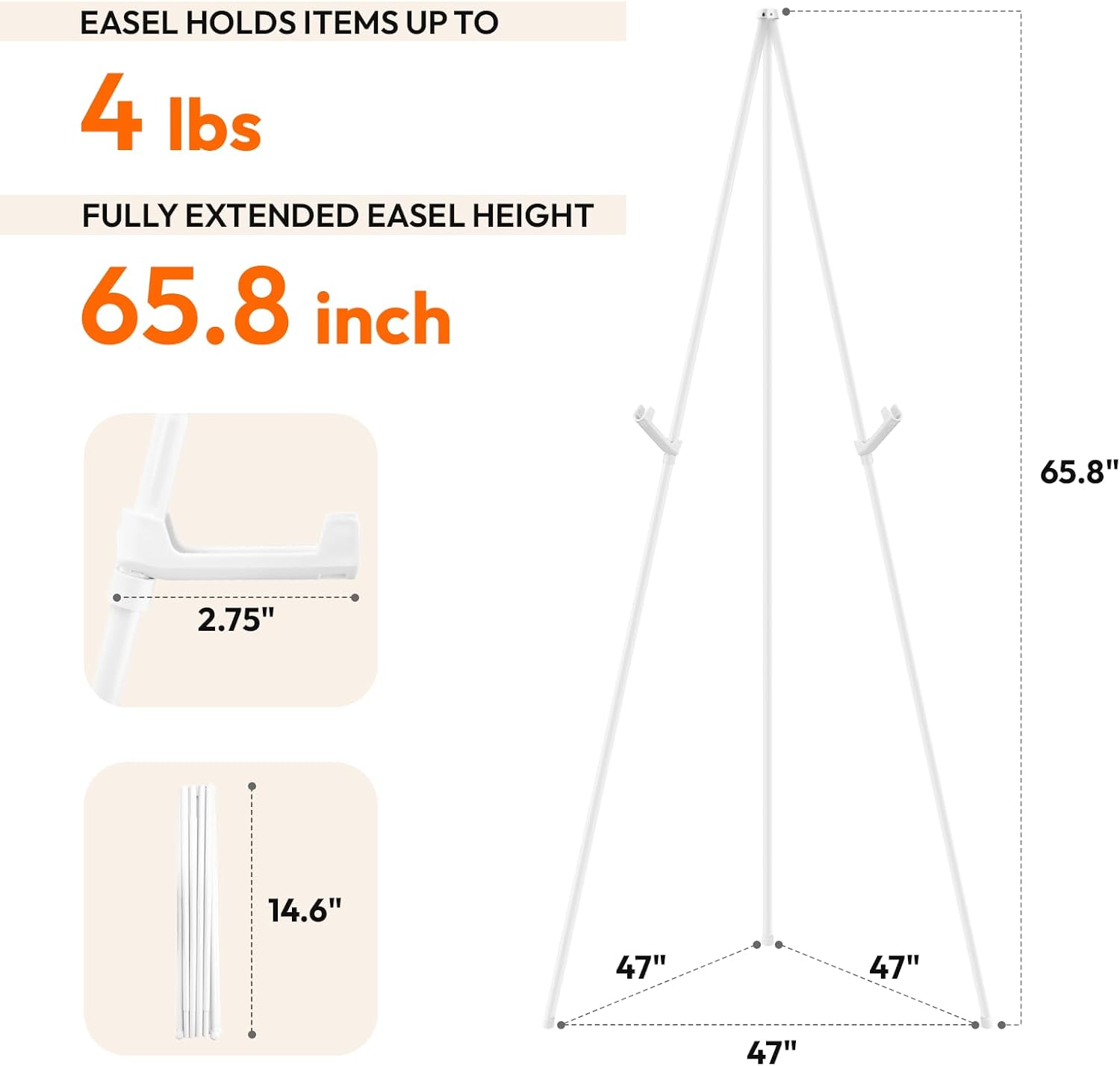 6PCS White Easel Stand for Wedding Sign Stand, 66 Inch Adjustable Metal Easels for Display, Portable Folding Easel for Wedding, Display Show, Arts, Poster with Portable Bags