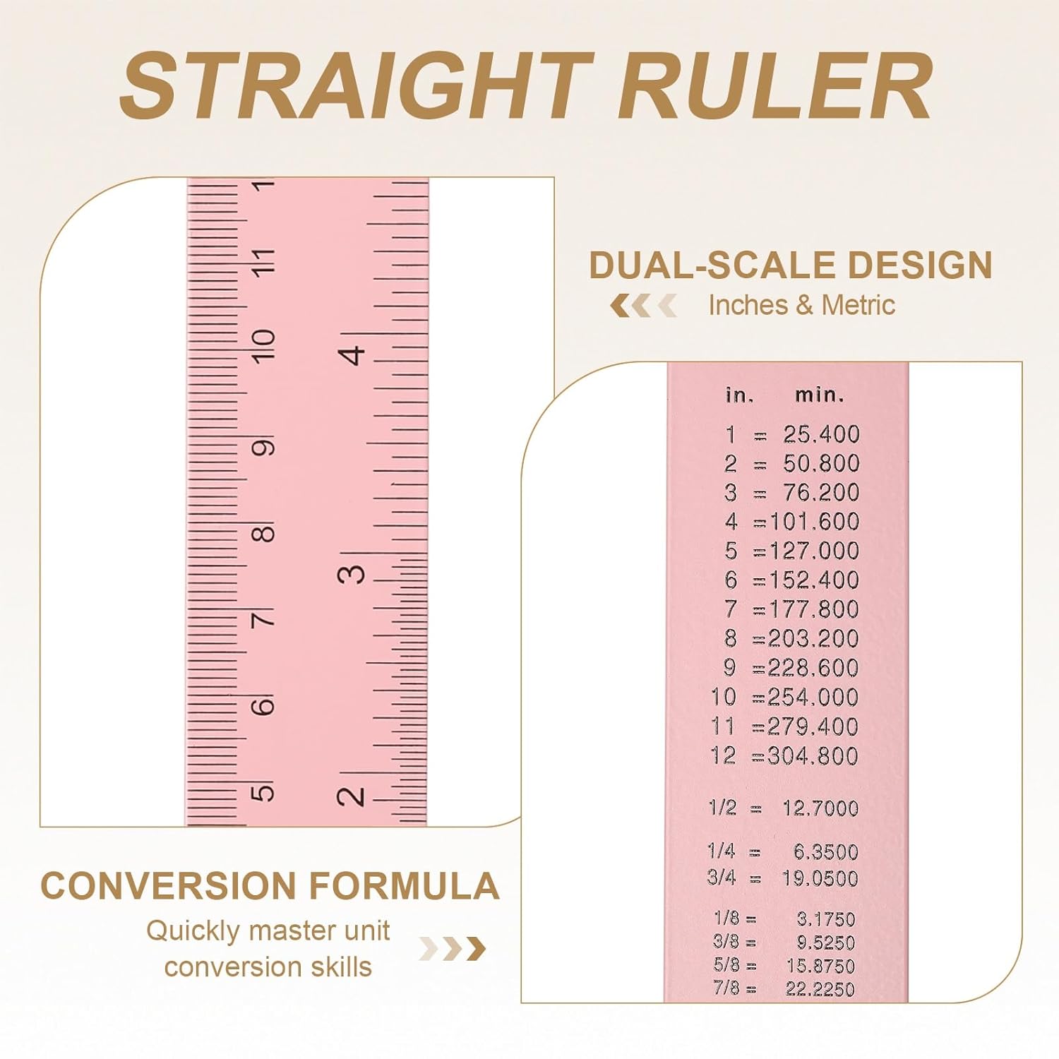 - Feature - The ruler features ink printing technology on its surface, ensuring that the scale is clear and sharp, remaining non-fading and non-blurring even after long-term use. It has a dual-scale design, and the back is carefully printed with a complete set of conversion formula for metric and SAE units, allowing beginners to quickly master unit conversion skills. Additionally, it includes a hanging hole design for convenient storage and accessibility.