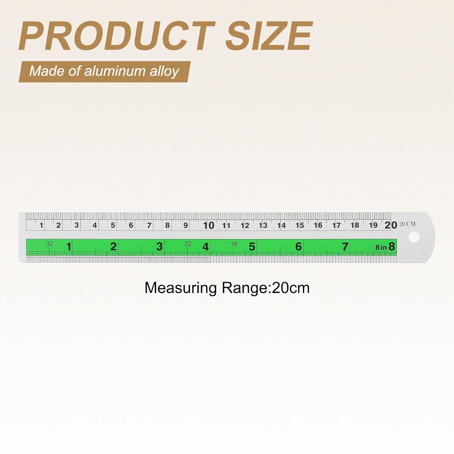 HARFINGTON 4pcs Metal Straight Ruler 20cm Metric SAE Aluminum Alloy Measuring Rulers Scale Tool with Hole for Measure Study Reading Classroom Office, Green