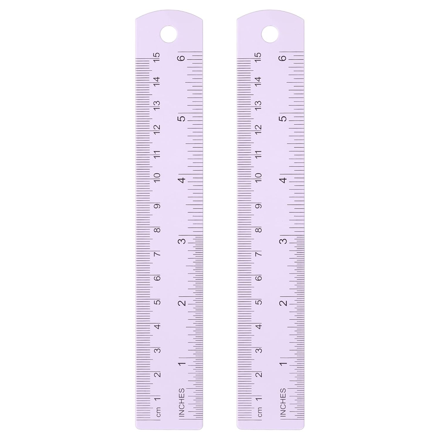 HARFINGTON 2pcs Metal Straight Ruler 15cm Metric SAE Aluminum Alloy Measuring Rulers Scale Tool with Hole for Measure Study Reading Classroom Office, Purple