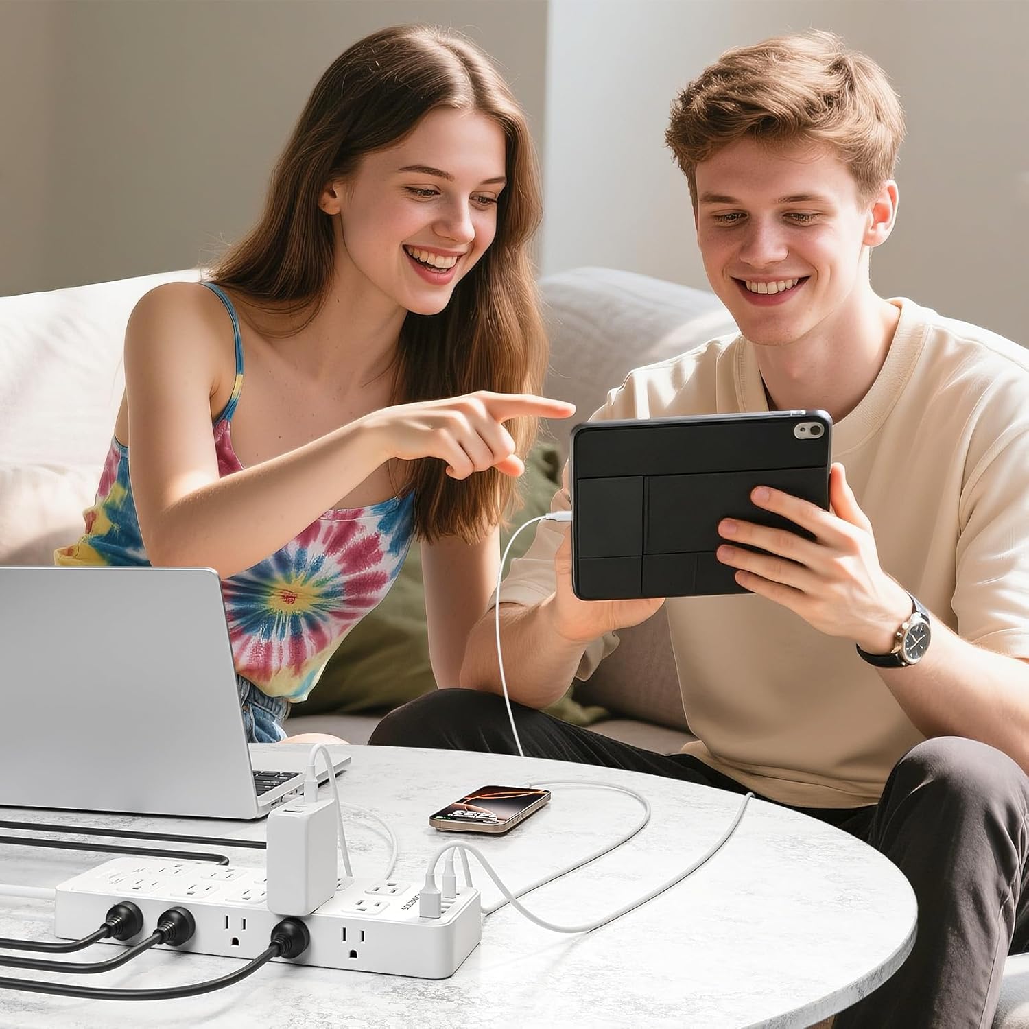 - 【Surge Protector Power Strip with 6 USB Charging Prots 】- The Surge Protector Power Strip Have 6 USB Chagring Ports (4 USB A Prots & 2USB C Prots) Total Max 18W,5V /3.6A, each USB A port features 5V/2.4A output. USB C charging port features 5V/3A MAX. Built- with smart technology, detecting charging devices and deliver optimal charging speed automatically, compatible with Kindle and most USB devices.