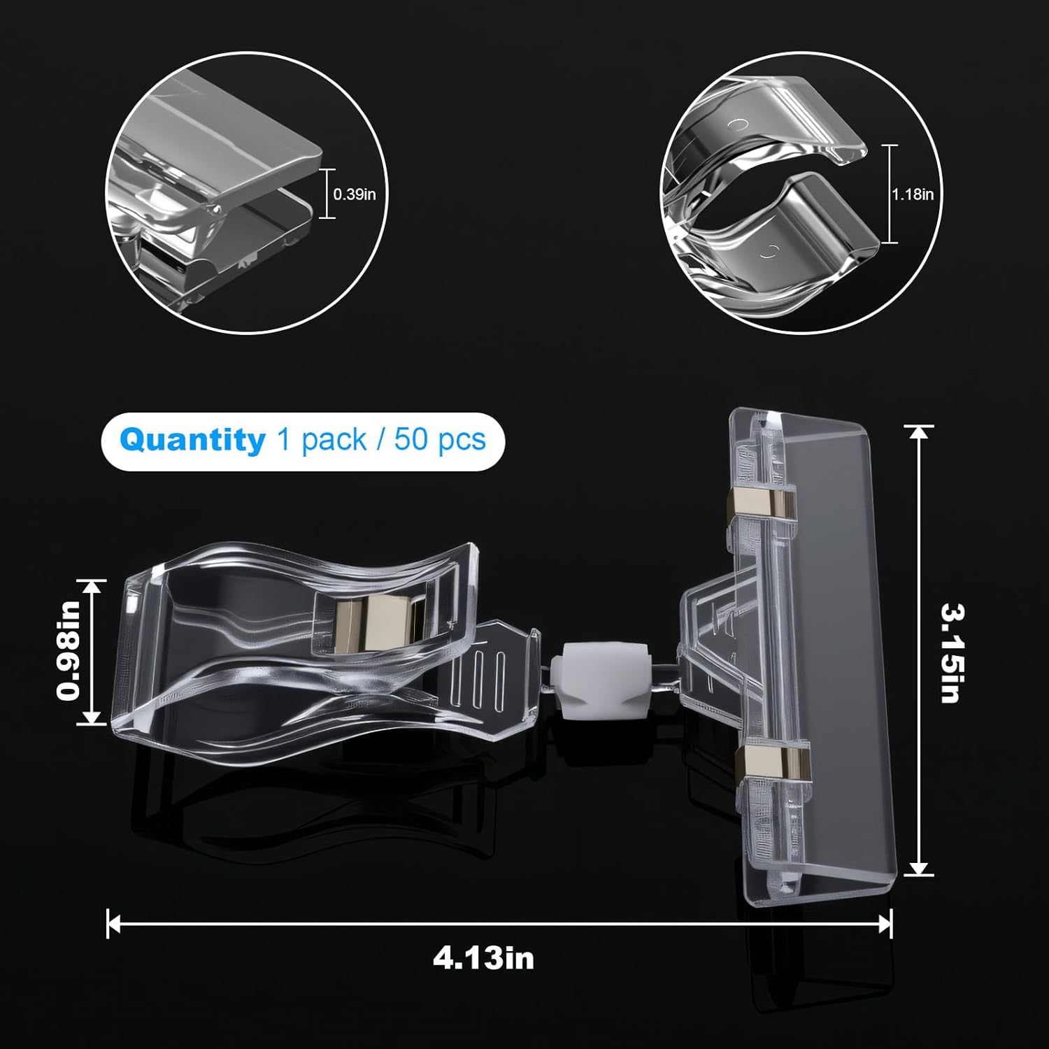- Double clip on design: our clear plastic clip features the double clip design (2 clips), the base clip for the bracket, its opening size is measuring about 0.98in; The horizontal clip for sign, its opening size measures about 3.15in, suitable for small and medium sized signs; You just connect through the ball joint, then attach the logo card to the bar on the other side of the clip logo holder
