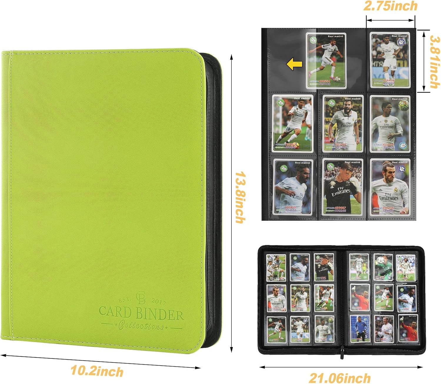 9 Pockets Card Binder,Premium Zip Trading Card Binder,540 Double Sided Pocket PU Collection Binder, Collector Album, Card Folder for MTG, TCG, Business Cards.(Grass Green)