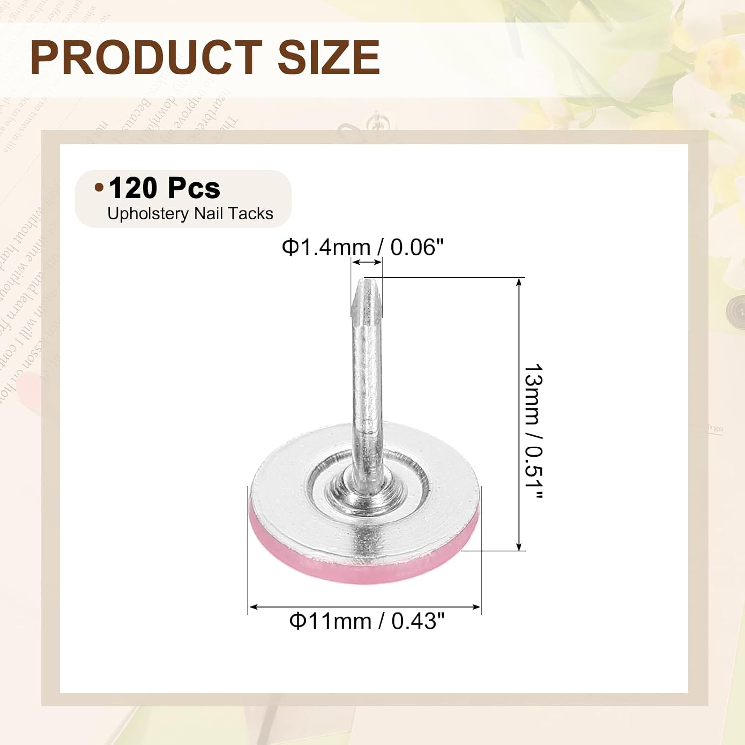 - [Size & Quantity] - The package comes with 120pcs decorative upholstery tacks. Sufficient quantity to meet your different daily needs. The overall size of upholstery nails is about 11mm x 13mm/0.43-inch x 0.51-inch(D*H)