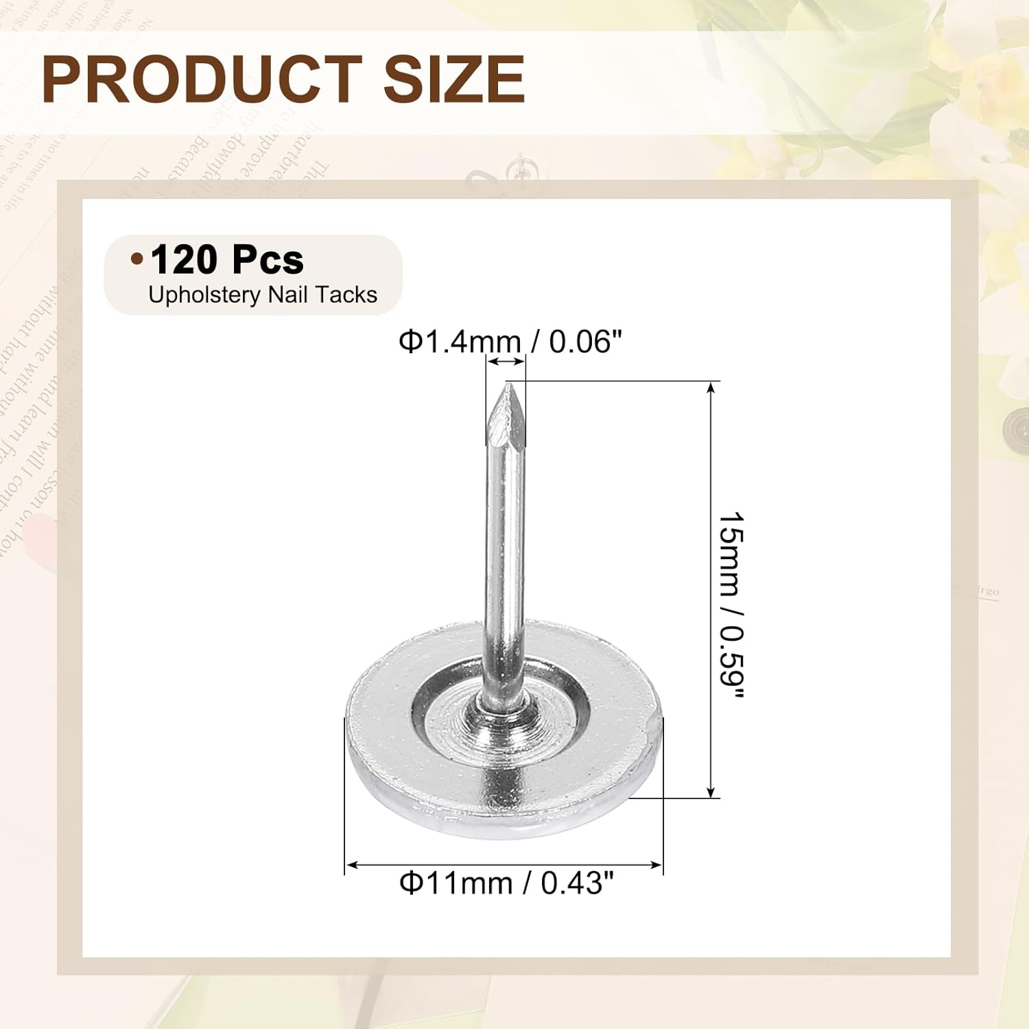 - [Size & Quantity] - The package comes with 120pcs decorative upholstery tacks. Sufficient quantity to meet your different daily needs. The overall size of upholstery nails is about 11mm x 15mm/0.43-inch x 0.59-inch(D*H)