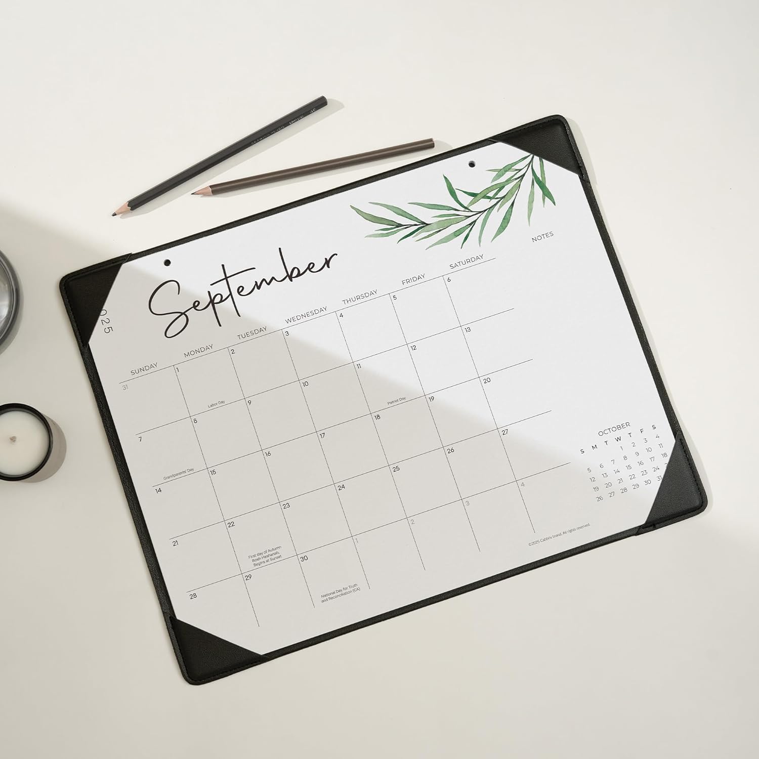 - 2025-2026 Desk Calendar - Beautiful Green Leaf designed desktop calendar covering July 2025 to June 2026 with holidays, Notes. Each month features one page help you efficient planning and scheduling better life