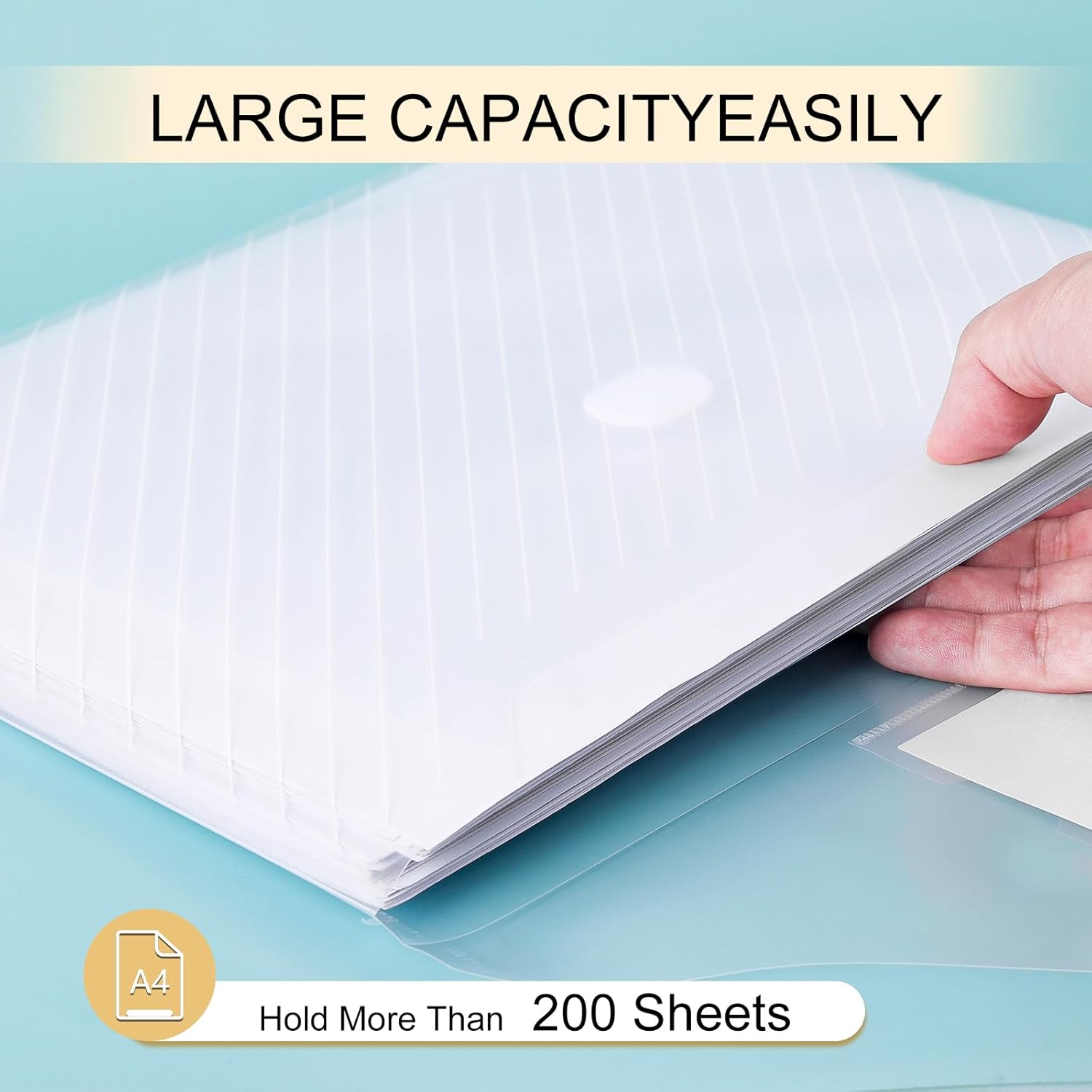 - 【Fits Letter & A4 Sizes】Made of fully transparent plastic, these envelopes allow you to instantly view and identify contents without opening. Each folder measures 12.75" x 9.12", perfectly sized for A4/US letter-size papers and offers ample storage space for everyday use.