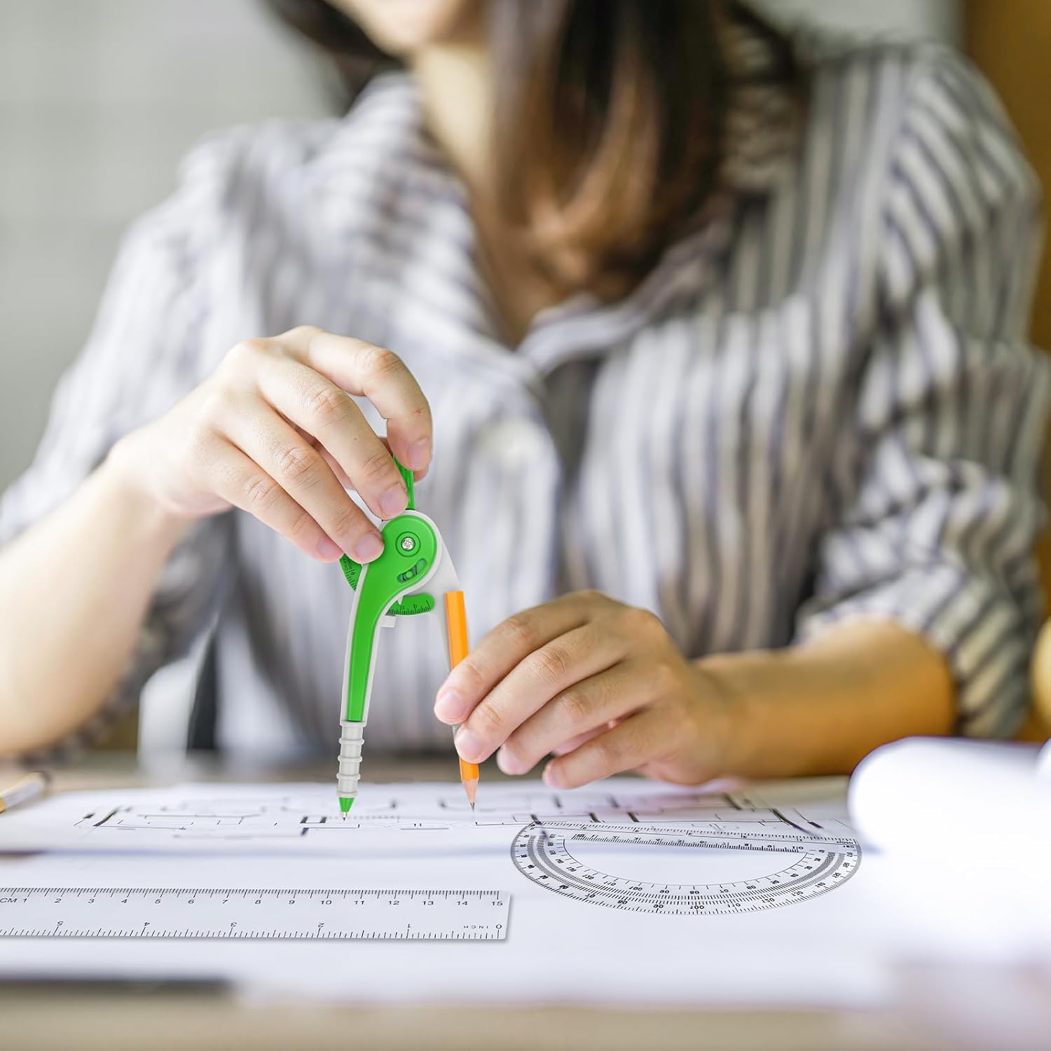 - Ideal Size: The 5.74-inch mathematical compass for geometry is well-suited for various applications; each comes with a 3.34 inch pencil that can be replaced when needed. The math compass can draw circles up to 12.2 inches in diameter and accommodates pencils, markers, and pens up to 0.3 inches in diameter, making it ideal for math projects and drafting