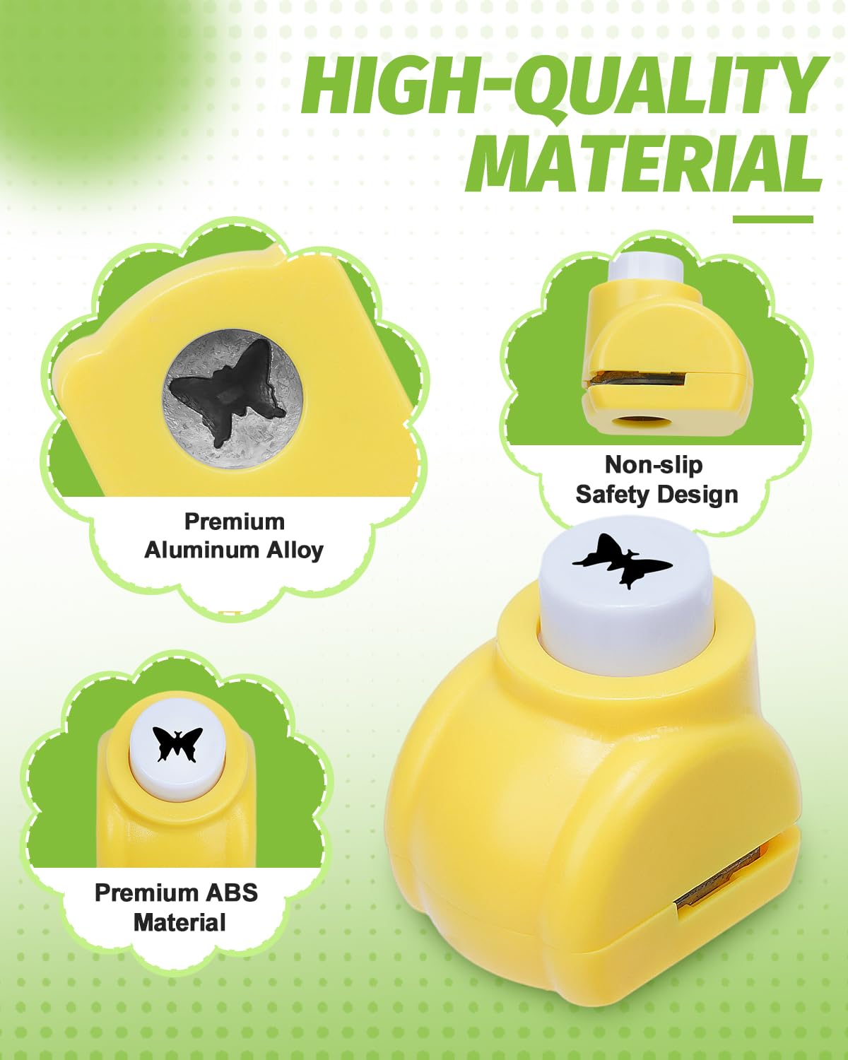 - Mini & Portable Size: Compact design (1.25” x 1.1” x 1”) makes it a convenient kids hole punch to carry anywhere. Shape cutters for paper is deal for classrooms, crafting corners, family time or travel